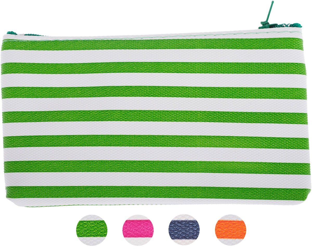 Süßer, gestreifter Geldbeutel Wahlweise in pink-weiß, grün-weiß, blau-weiß oder orange-weiß Zu schließen mit Reißverschluss Ein Außenfach mit Reißverschluss