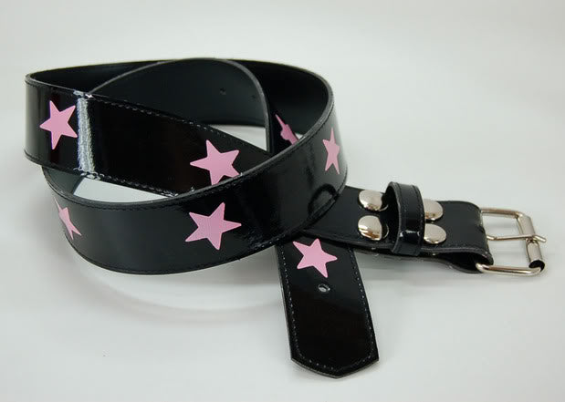 Mit vielen Pinken Sternen Kinderleicht austauschbare Gürtelschnalle (mit 2 Druckknöpfen) für schnellen Bucklewechsel Mit schwarzen Nähten Kaum zu bekommen!!!!! GANZ GANZ seltenes Design!!!!!!