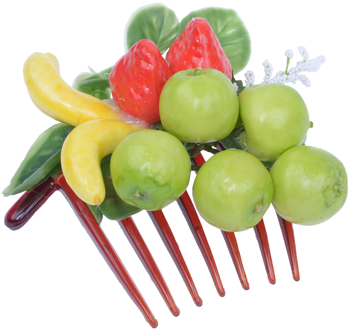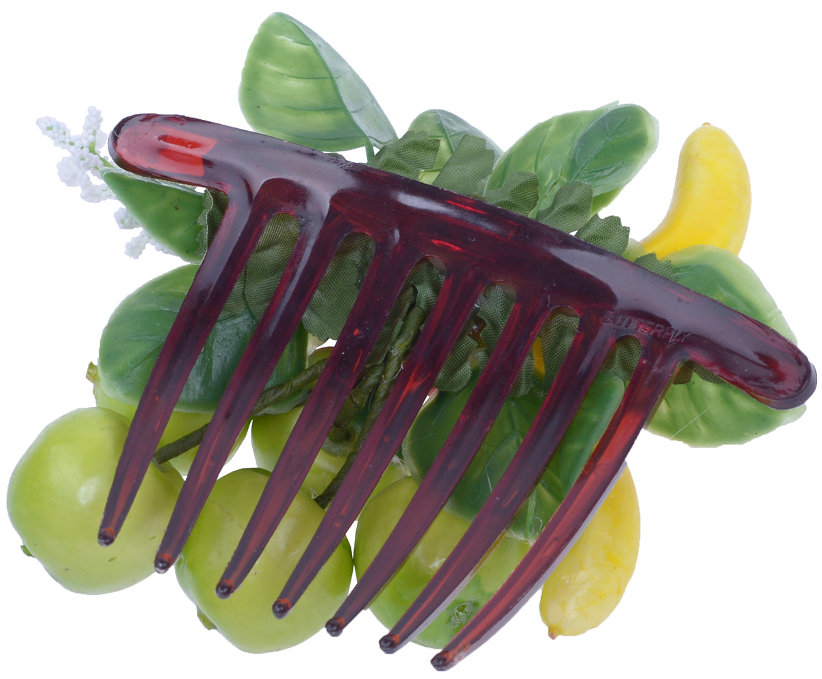Großer Kunststoff Haarkamm mit Früchte Potpourrie Originalgetreu nachgebildete Früchte mit Blättern zusammengestellt Achtung: da in Handarbeit hergestellt, können die Kämme sich jeweils leicht unterscheiden