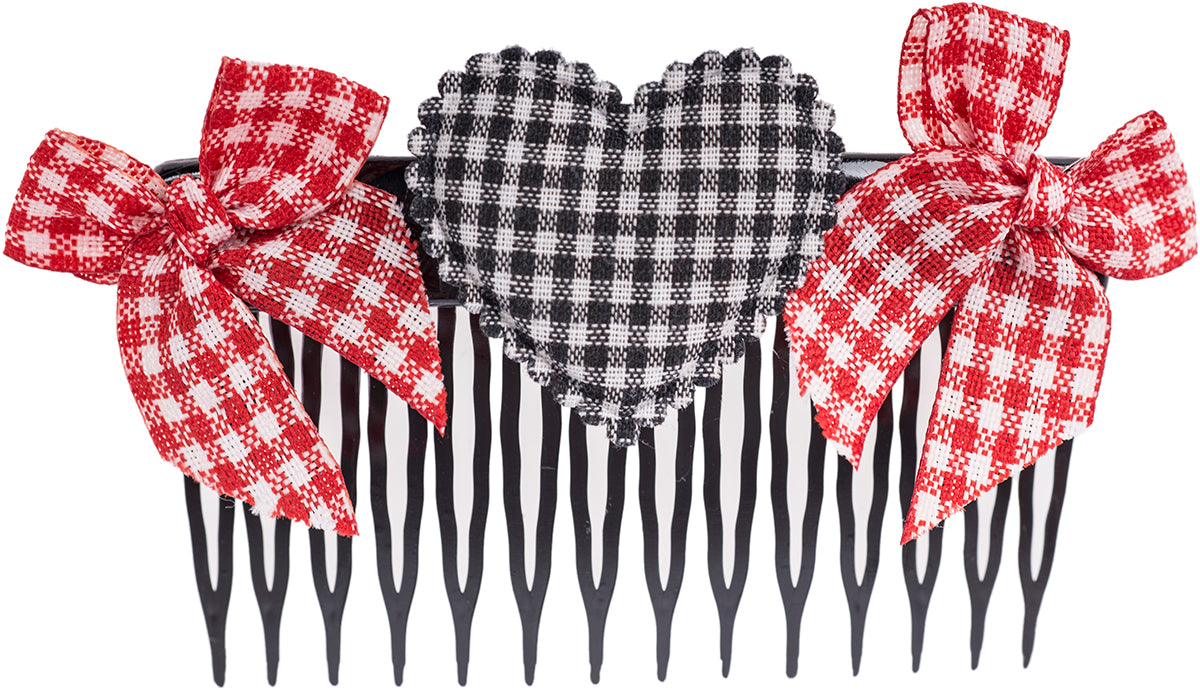 Trachten Stil NELLIE Pepitamuster Karo Heart BOW Schleifen Haarkamm
