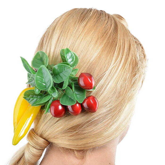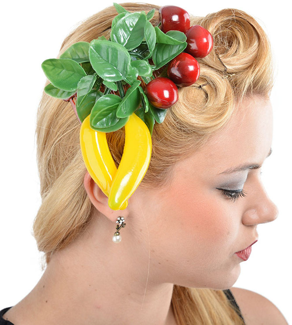 Cute Tiki CHERRY Kirschen Bananen 50s Fruit HAARKAMM
