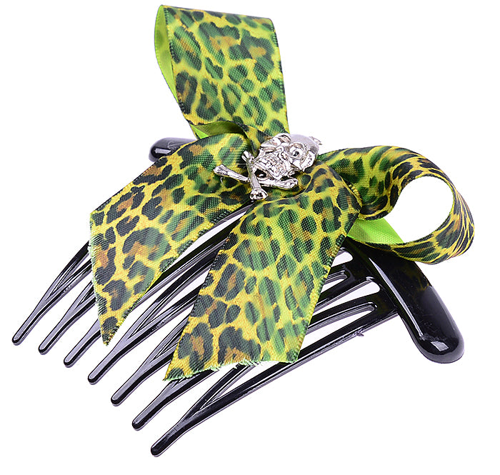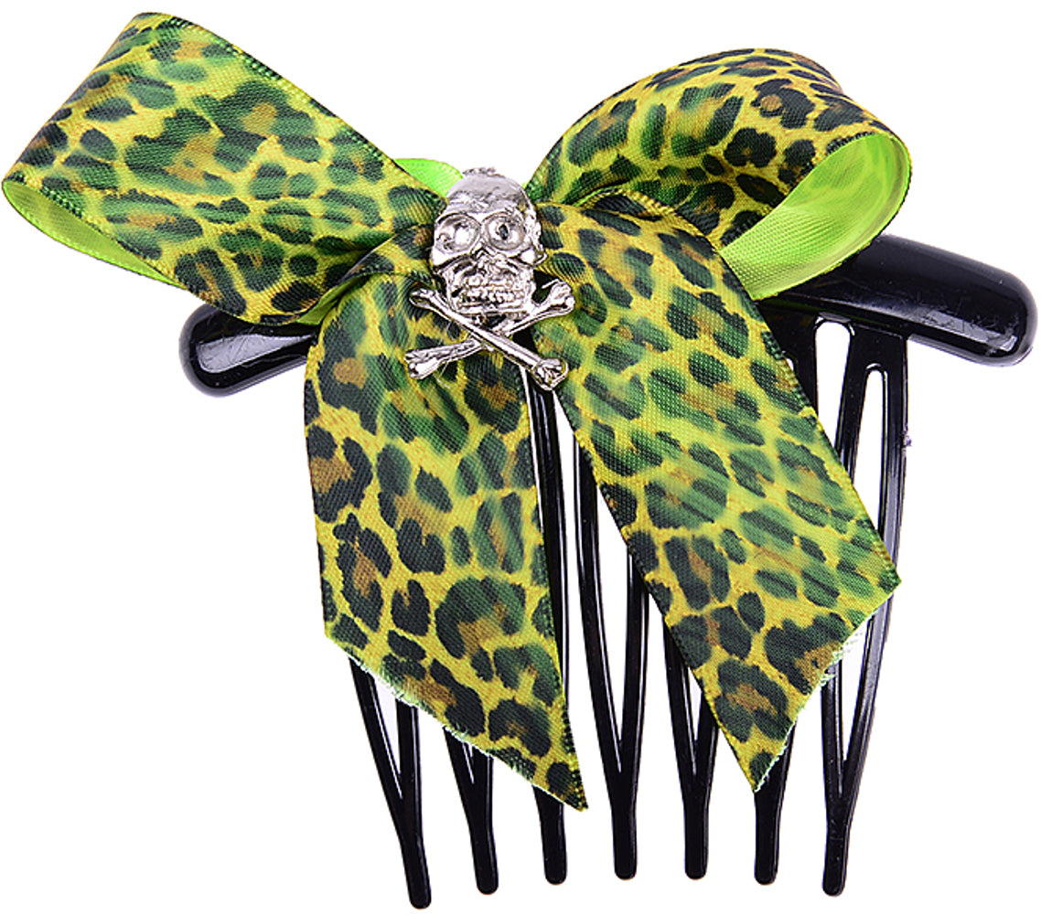 Cute Leo SKULL Leoparden Totenkopf Haarkamm - Grün