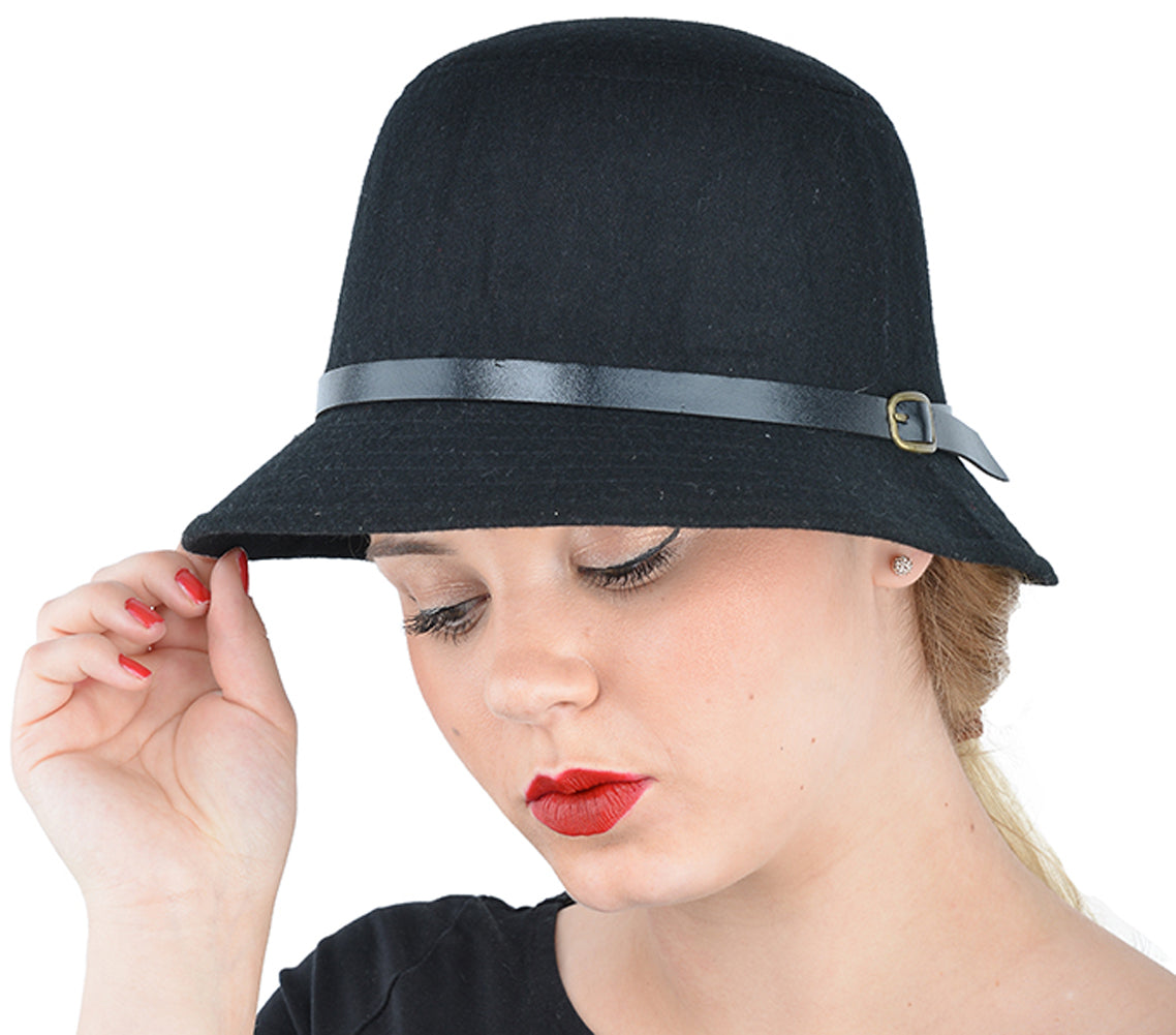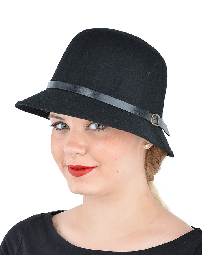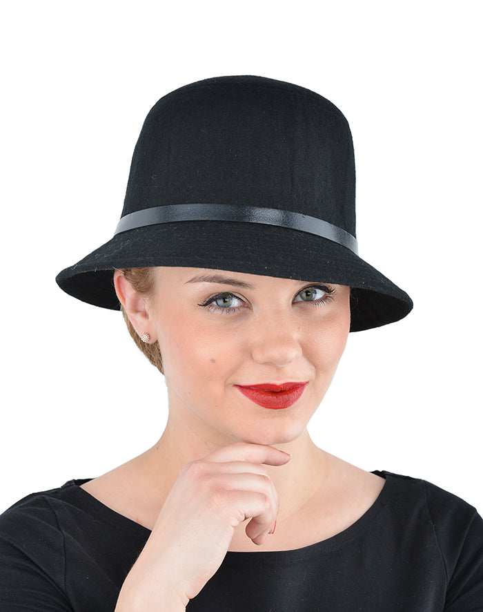 Cute Retro MARGIE Flet 50s Hatband Filz HUT - Schwarz
