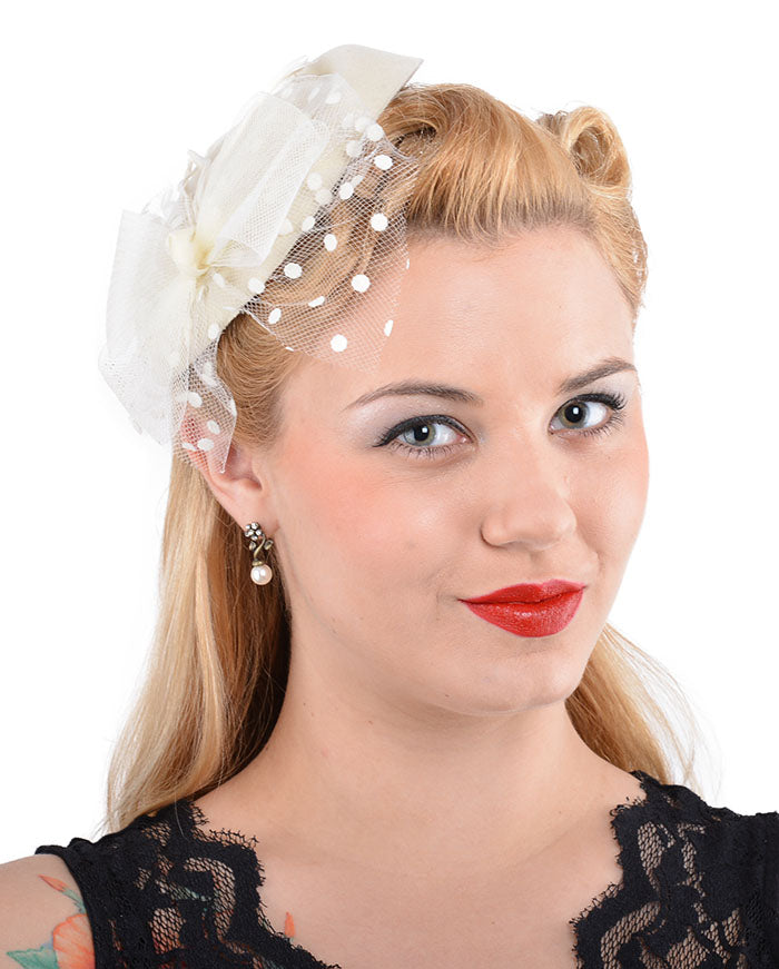 Vorne mit weißer Schleife aus Netztüll mit Pünktchen