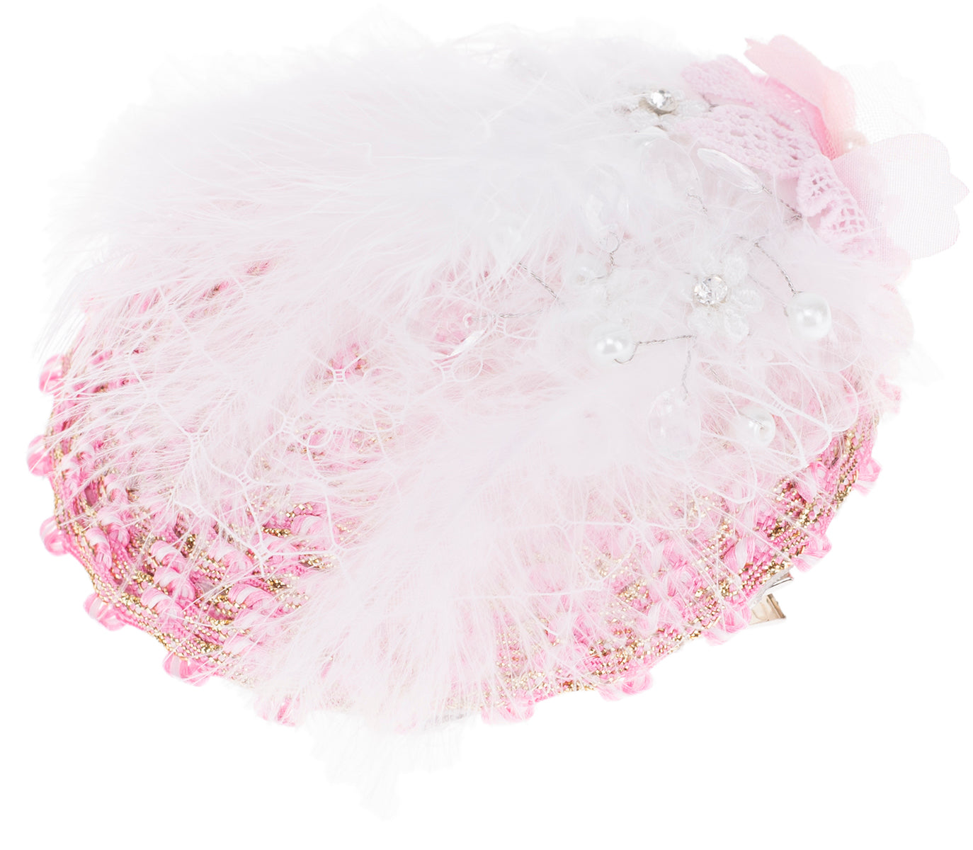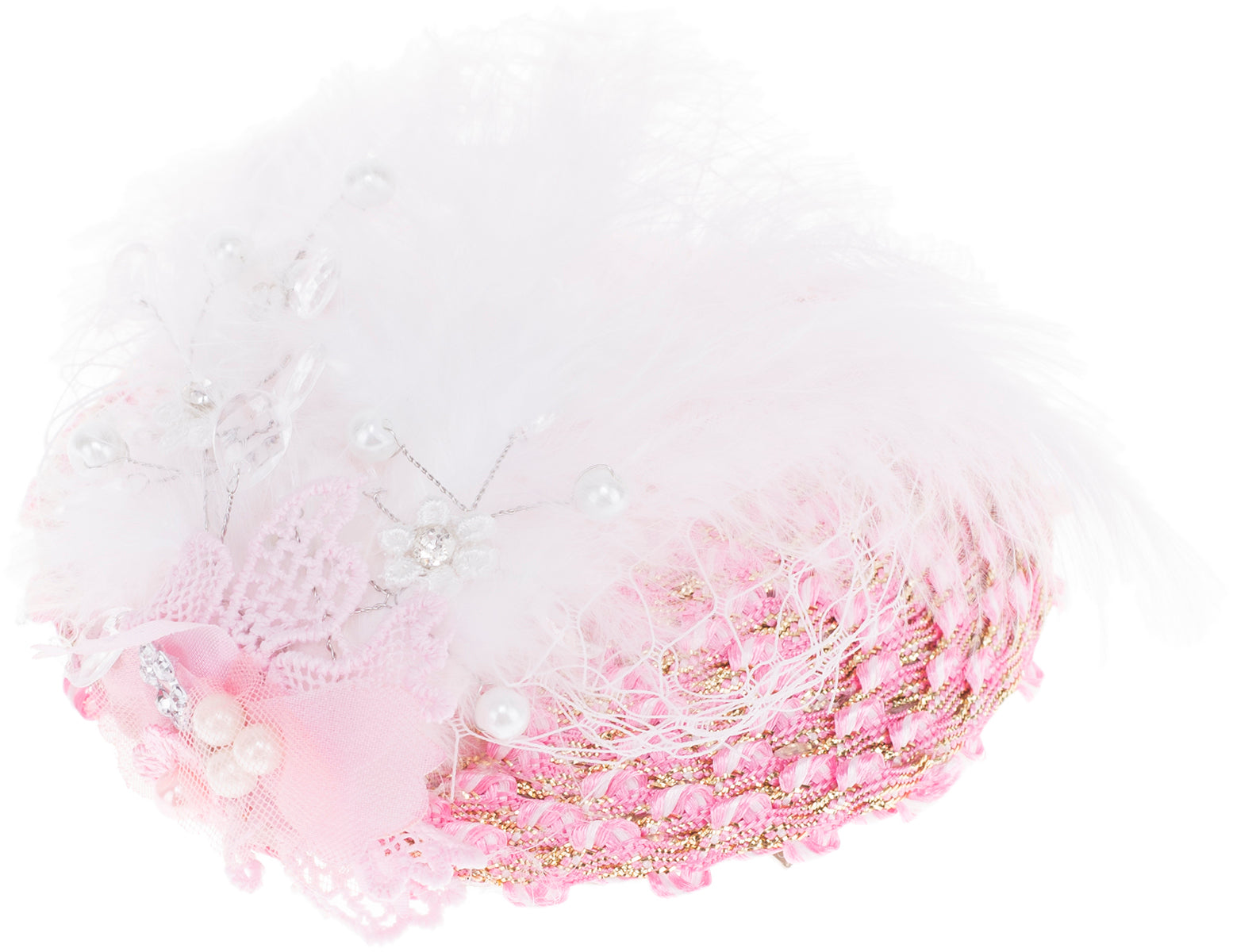 Vintage RUDY Floral FEATHER Blumen PERLEN 50s PILLBOX Hütchen Fascinator - Rosa