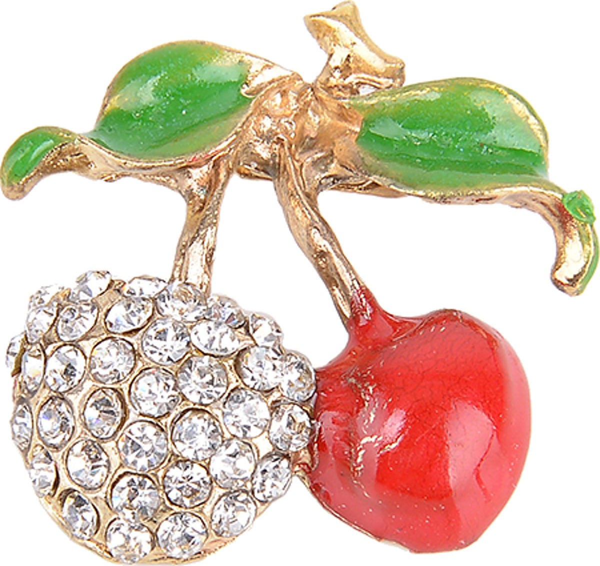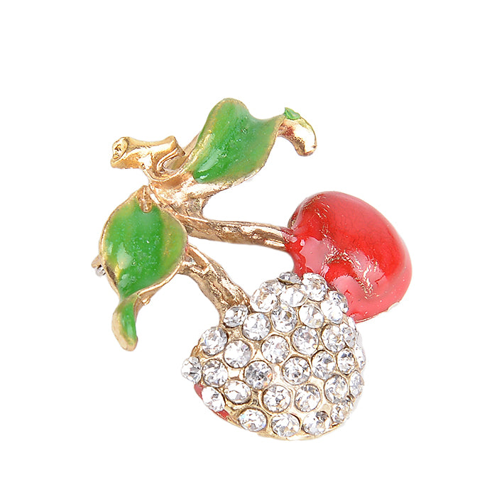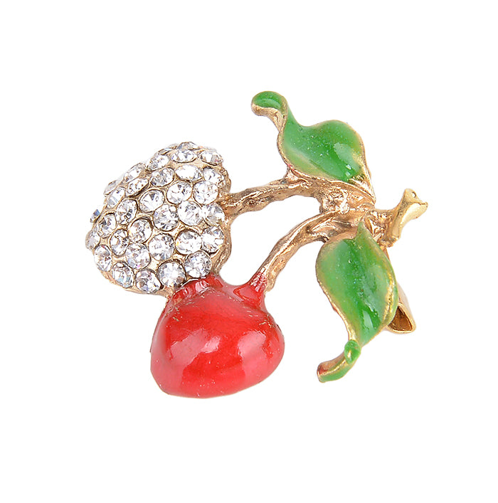 Wunderschöne Brosche in Form einer Kirsche Eine Seite ist rot lasiert, die andere Seite mit Glitzersteinchen besetzt Goldfarbene Optik Rückseitig mit Broschennadel