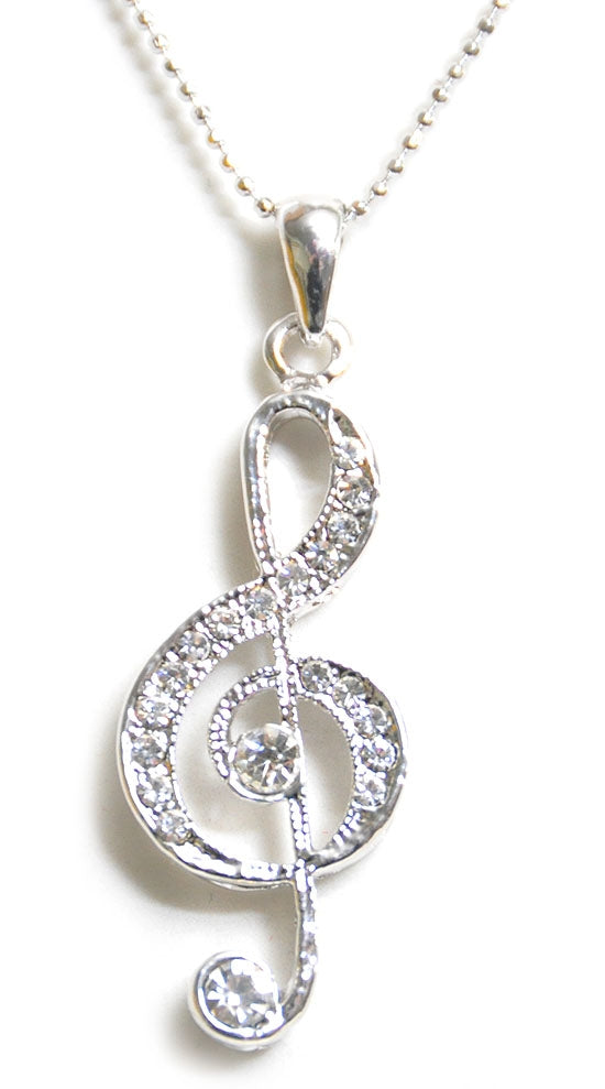 Edler Notenschlüssel-Anhänger mit Kette Einseitig, detailliert gearbeiteter Mit vielen Strass-Steinchen besetzt Hinten einfarbig Kugelhalskette mit Verschluss