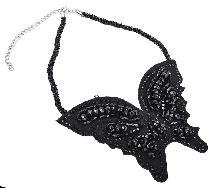 Edler_Black_BUTTERFLY_Retro_Perlen_Schmetterling_HALSKETTE_-_Schwarz