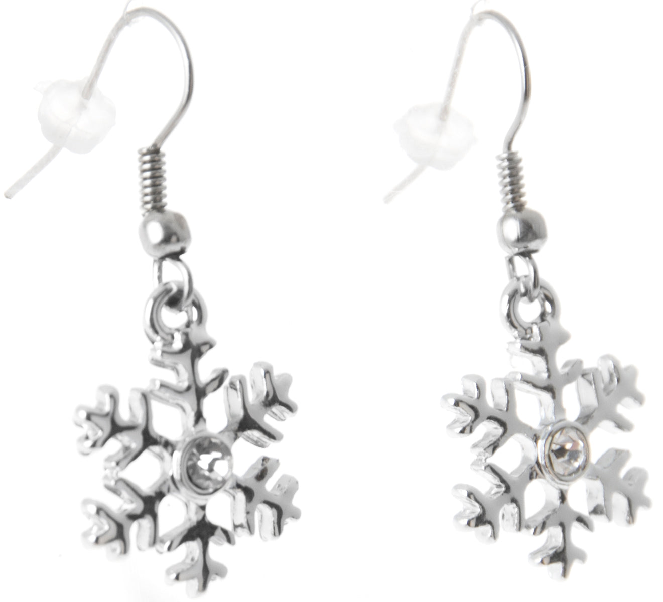 Süße Ohrhänger mit Anhänger in Form einer Schneeflocke mit kleinem Glitzerstein in der Mitte