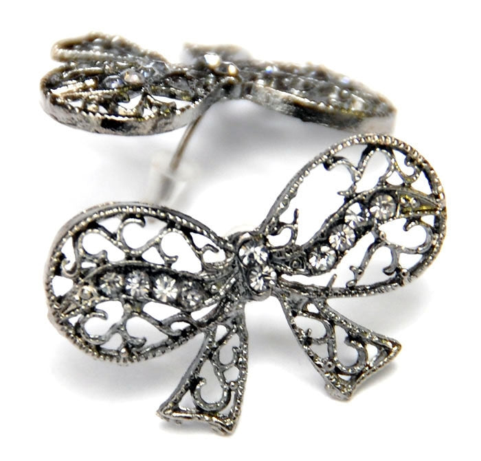 Nostalgische BOW Schleifen Strass Ohrstecker - Silberschwarz