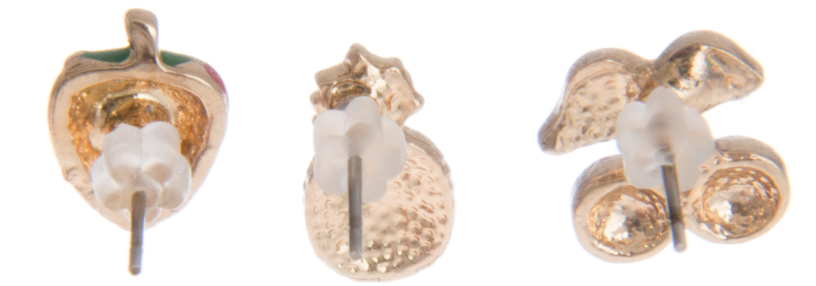 Zuckersüßer Vintage Ohrschmuck mit goldfarbener Einfassung in Form von Früchten