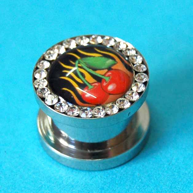 Flaming Cherries STRASS Flesh Tunnel Plug