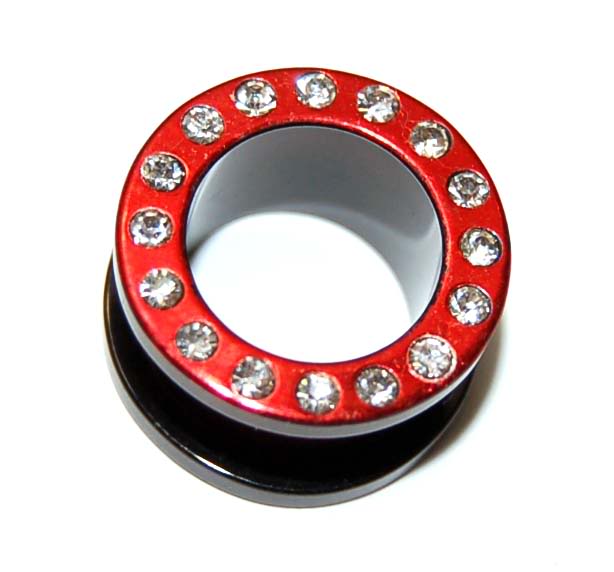FLESH TUNNEL Plug mit Strass - Rot