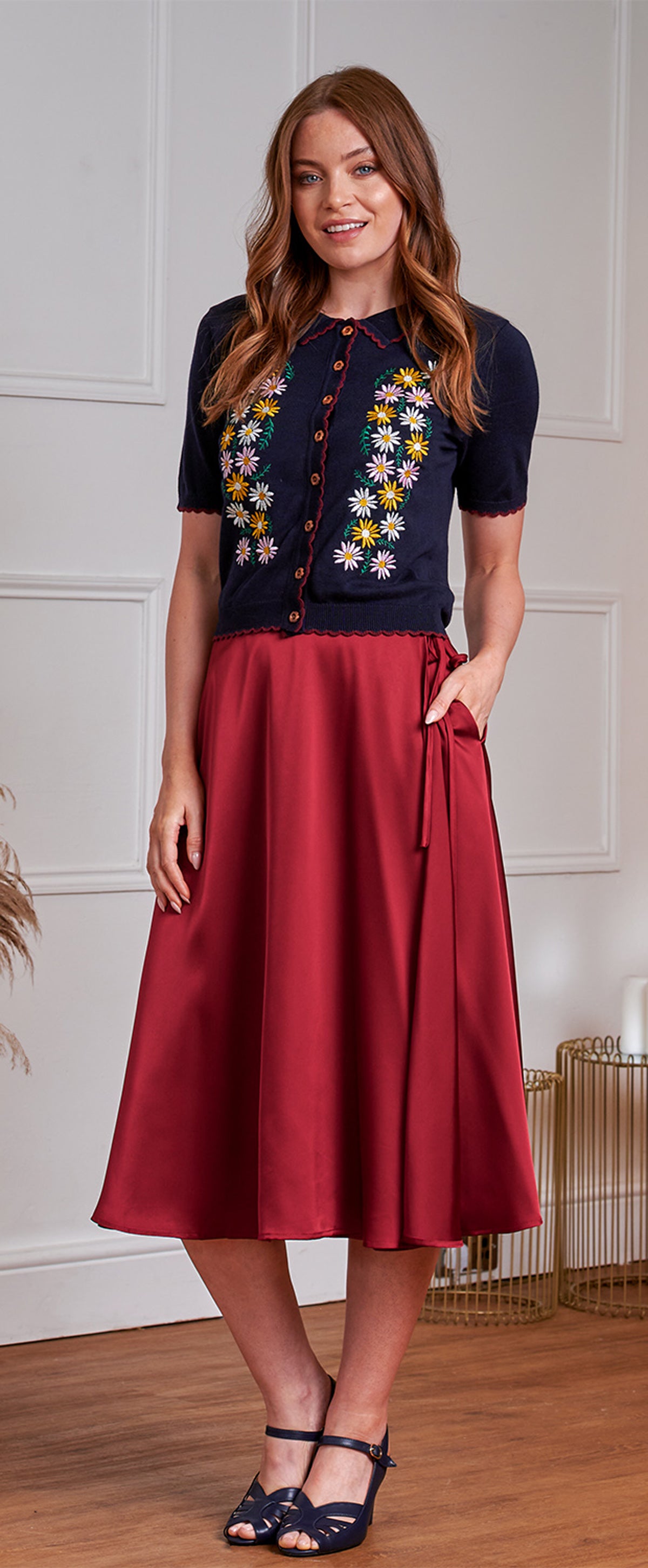 Die weiche Strickqualität sorgt für angenehmen Tragekomfort. Perfekt kombinierbar mit Röcken, Kleidern oder Jeans für einen femininen Vintage-Look.