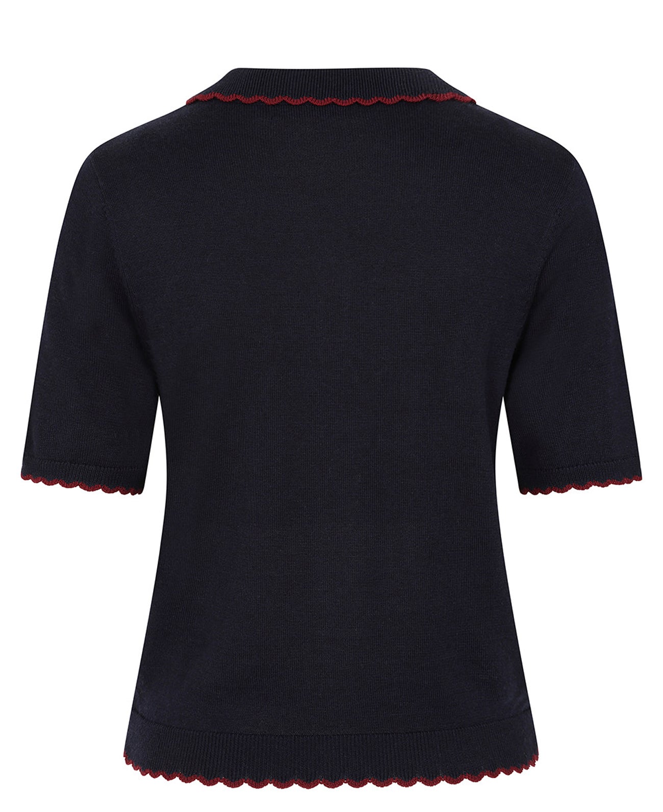 Kragen mit weinroter Einfassung in Wellen