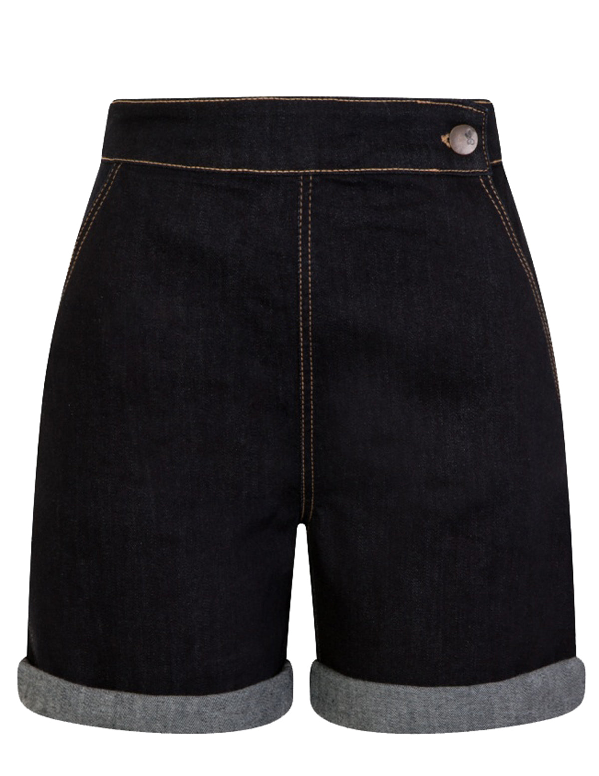 Hell Bunny YAZ Vintage DENIM High Waisted JEANS SHORTS Hose Blau