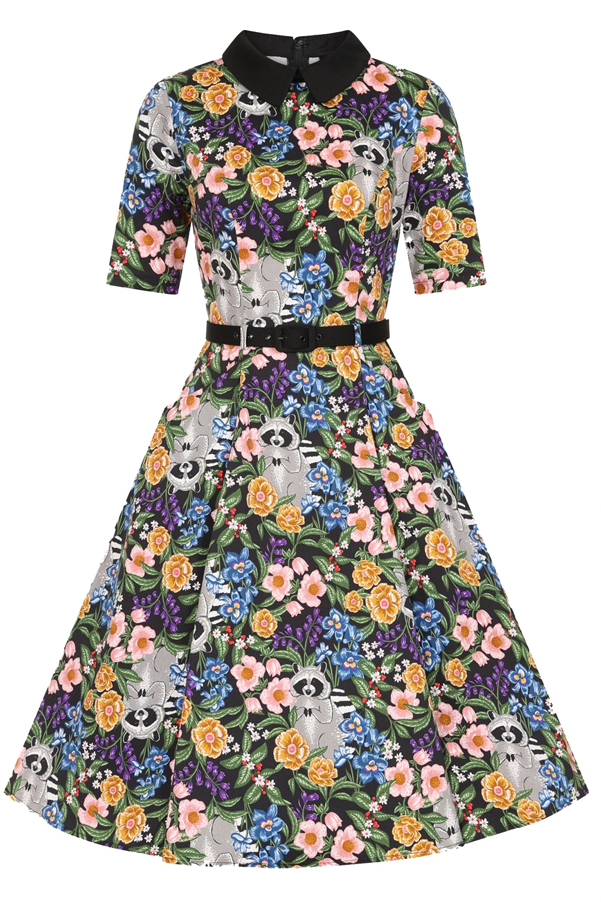This bloomin fabulous style is the Winona Forest Floral Raccoon Swing Dress!