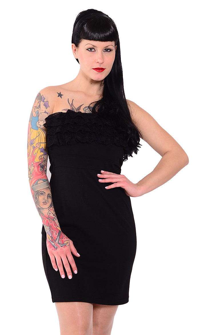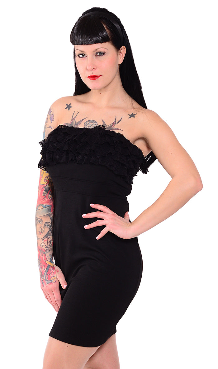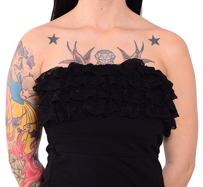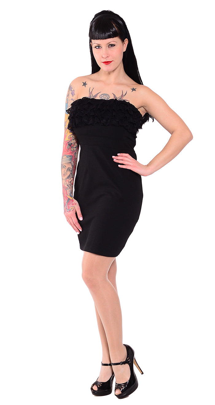 Edles PIN UP Ruffle Lace Bandeau KLEID - Schwarz