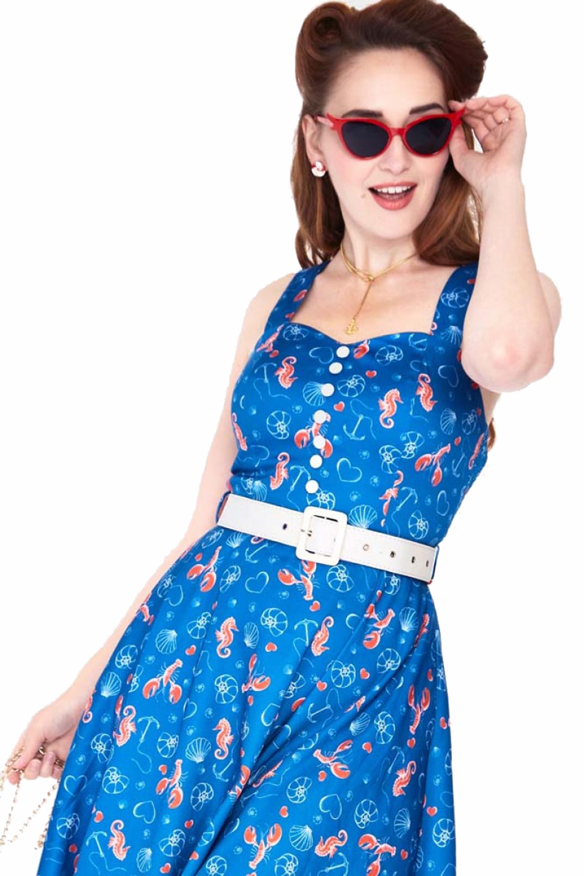 Das Nautical Seahorse Kleid von Voodoo Vixen ist ein traumhaftes, maritim angehauchtes Swing Kleid in sommerlichem Retro Design
