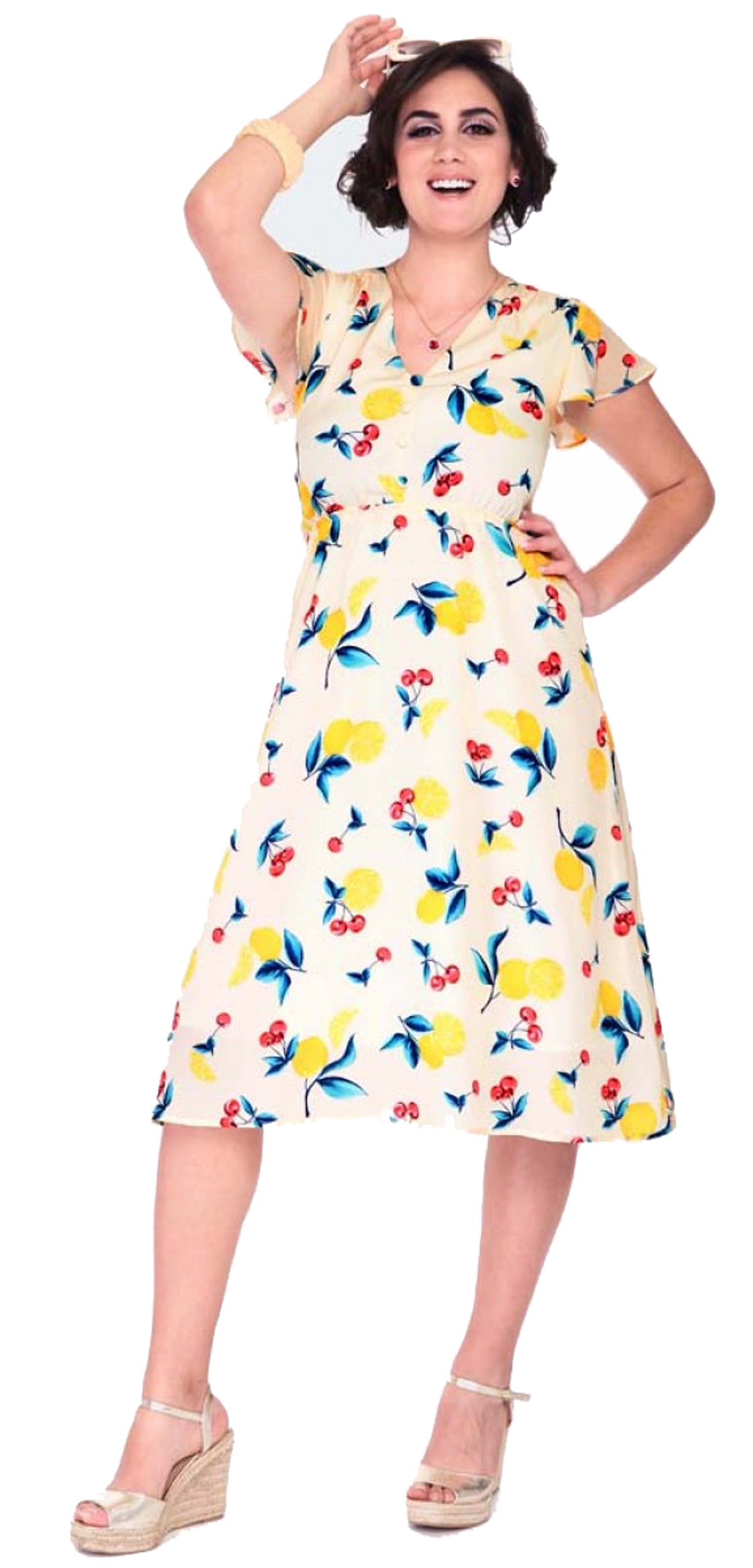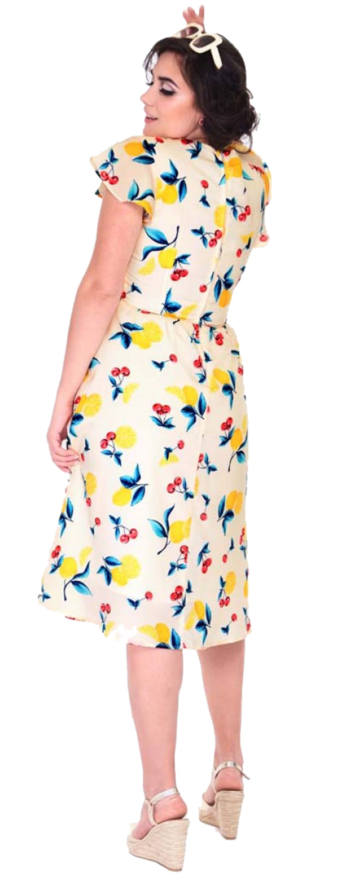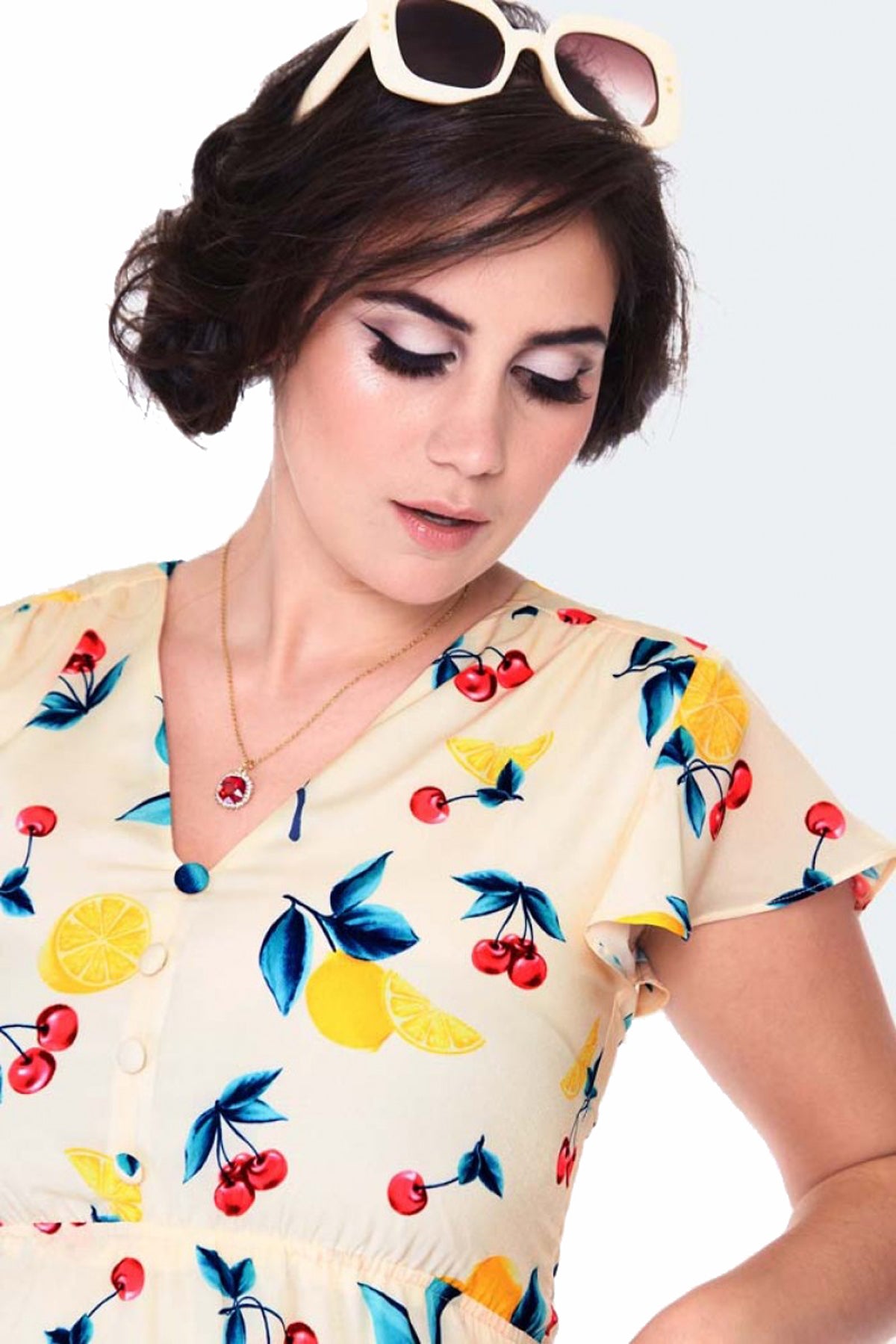 Voodoo Vixen CHERRY LEMONADE Vintage Fruits V-Neck DRESS Kleid in A-Linie
