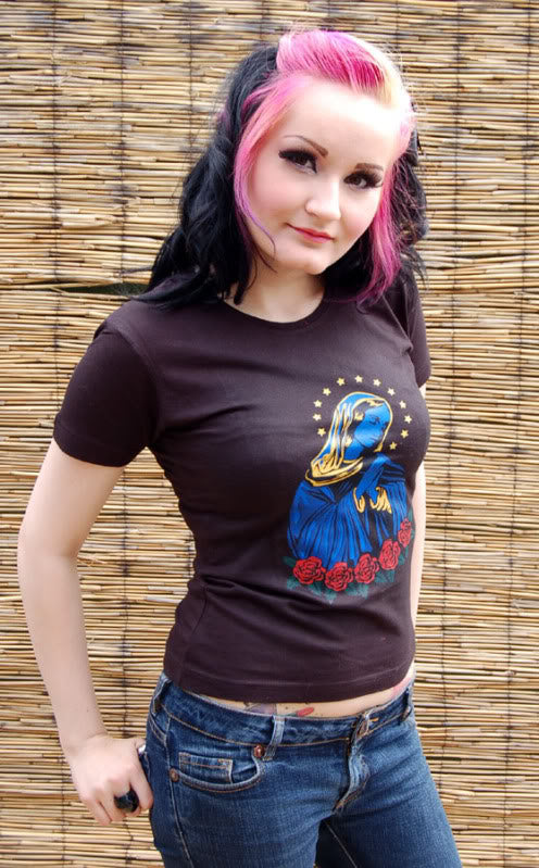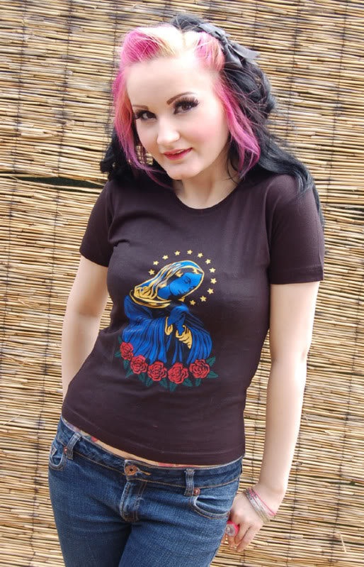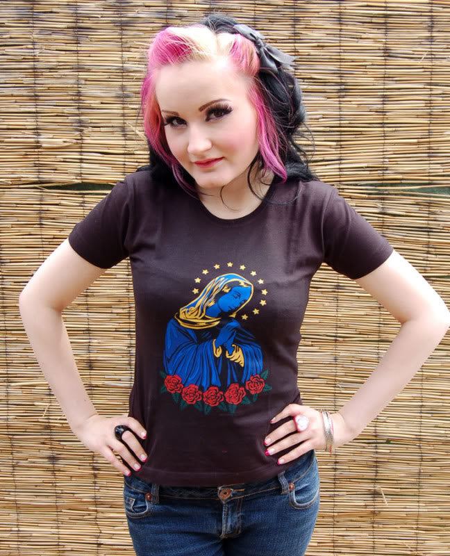 Killer Kirsche Heilige MARIA Stars Sterne Girlie Shirt