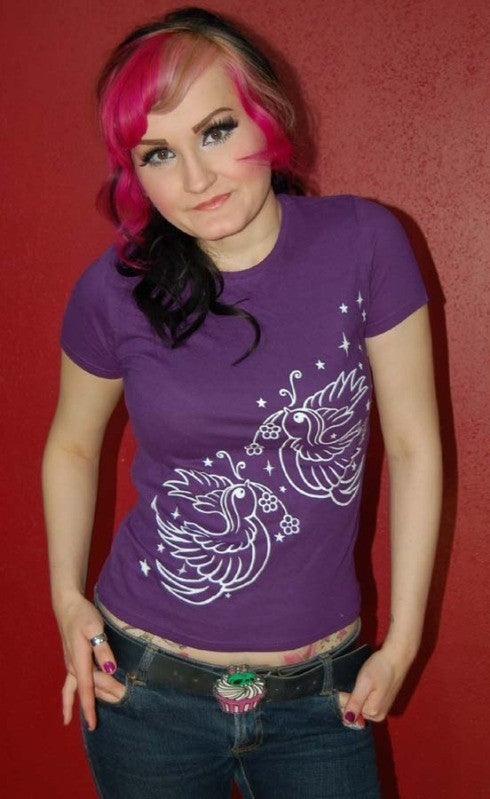 Killer Kirsche Sweet Swallows Schwalben Girlie Shirt - Lila