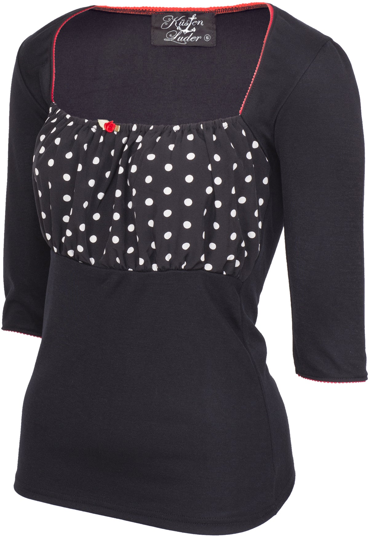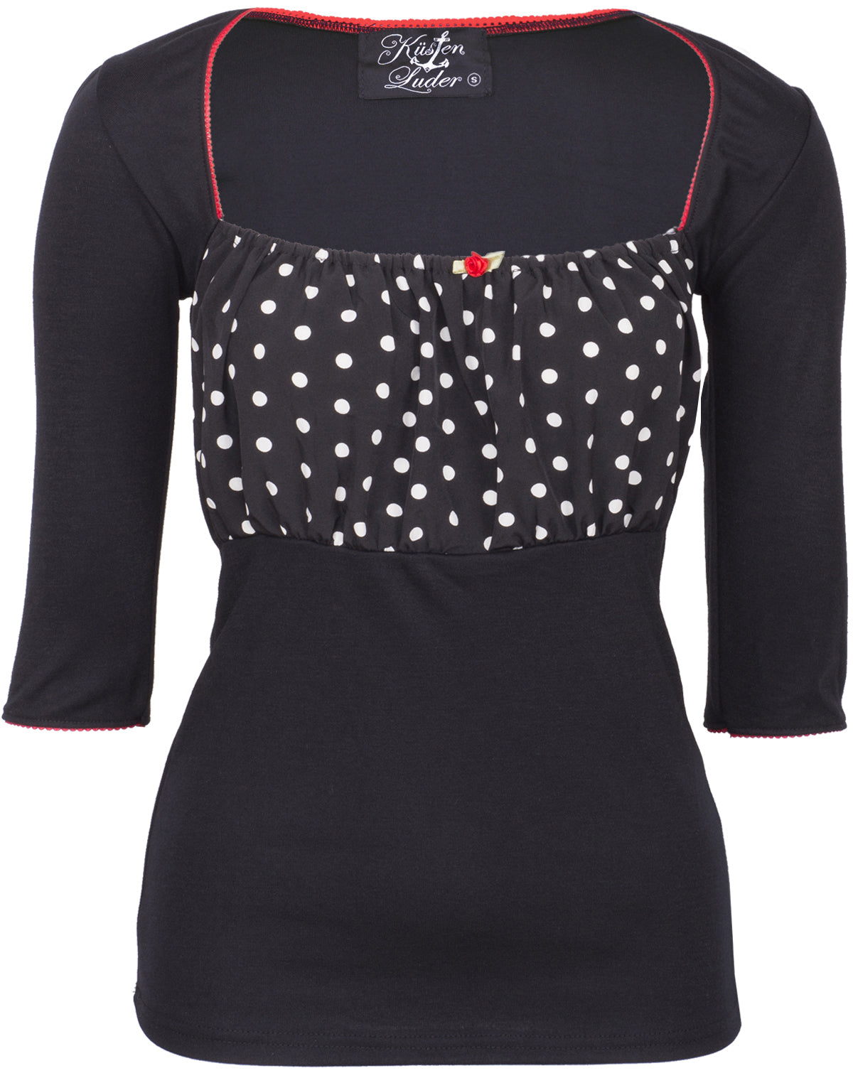 Vorne mit Brusteinsatz in Schwarz mit weißen Punkten
