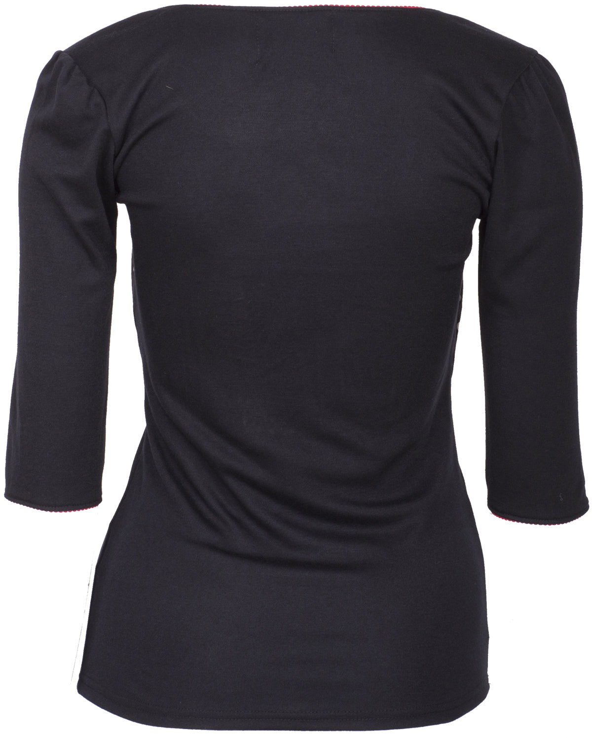 Außer dem Brusteinsatz ist das Shirt komplett Schwarz gehalten