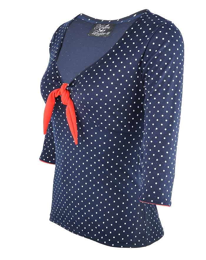 Kuestenluder_LEXIE_50s_POLKA_DOTS_Red_Knot_Punkte_3_Arm_SHIRT_-_BlaumRFRNBsILDLhr