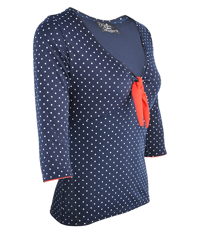 Küstenluder «LEXIE 50s POLKA DOTS» Punkte Red Knot 3/4 Arm SHIRT - Blau