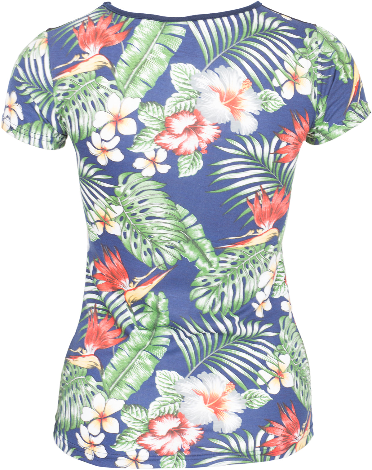 Mit Frangipaniblüten, Hibiskusblüten, Lilien und Palmenzweigen als Muster