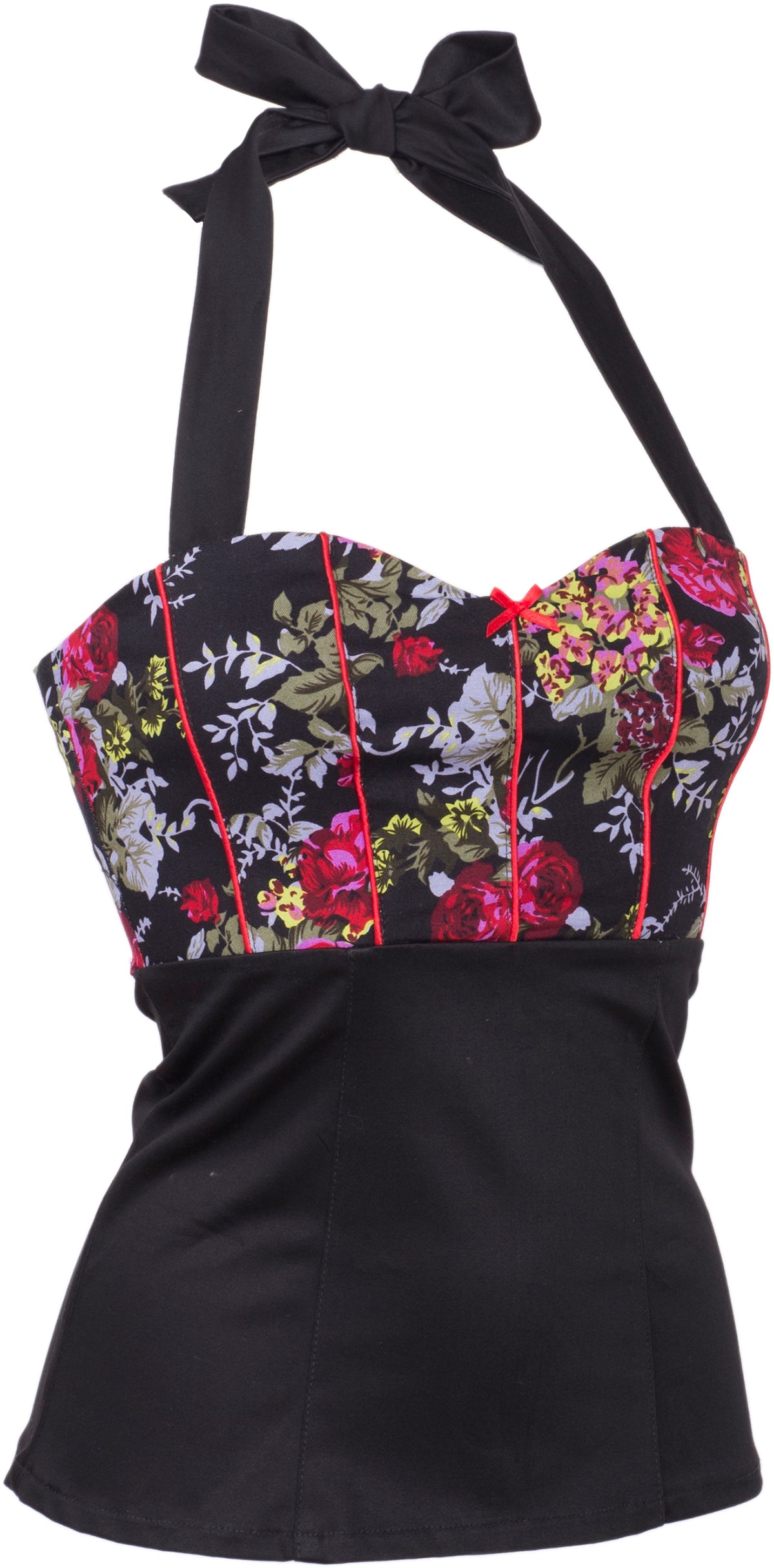 Küstenluder «VERLIE FLORAL» Vintage Roses Red Bow Neckholder TOP