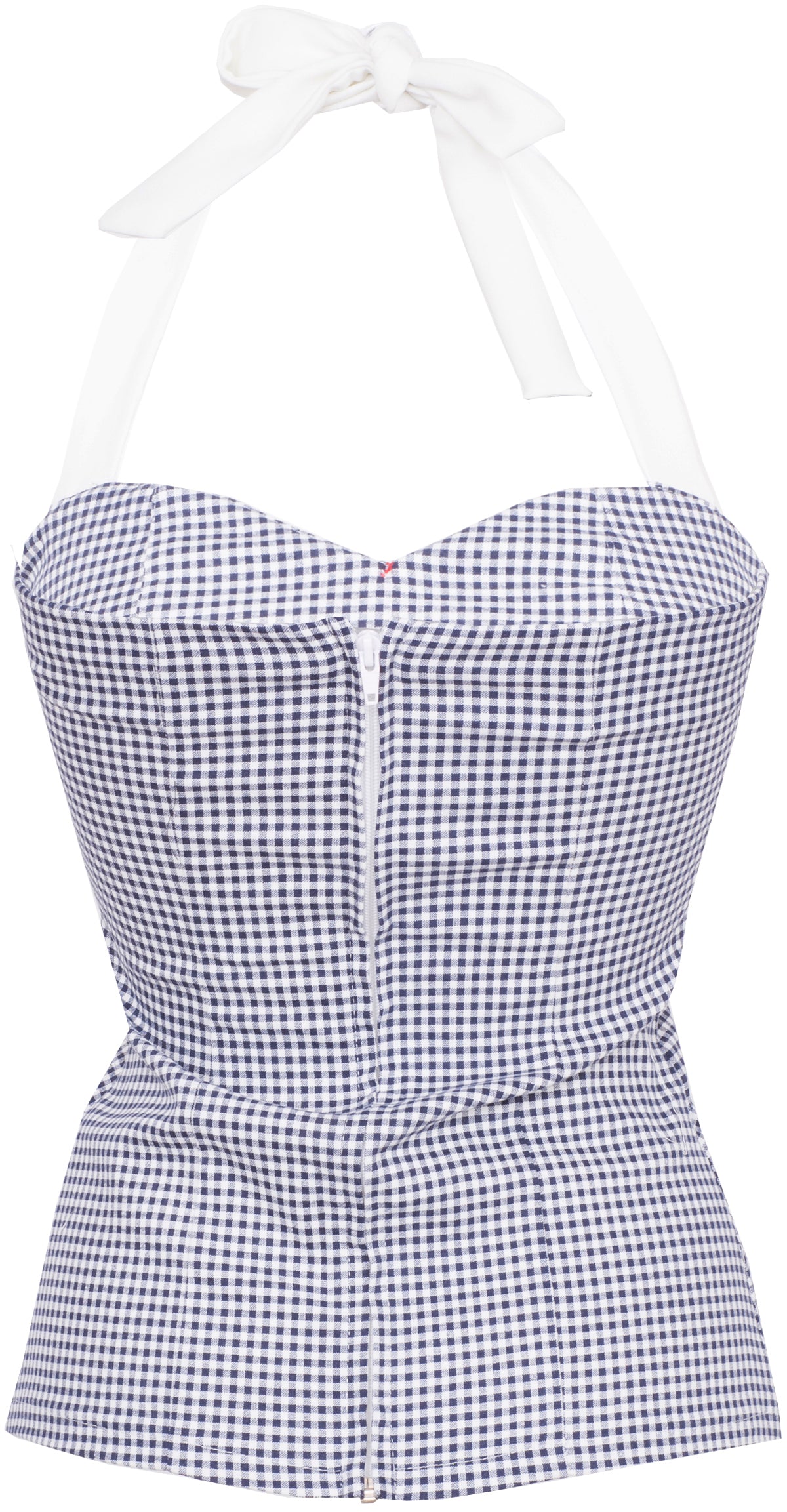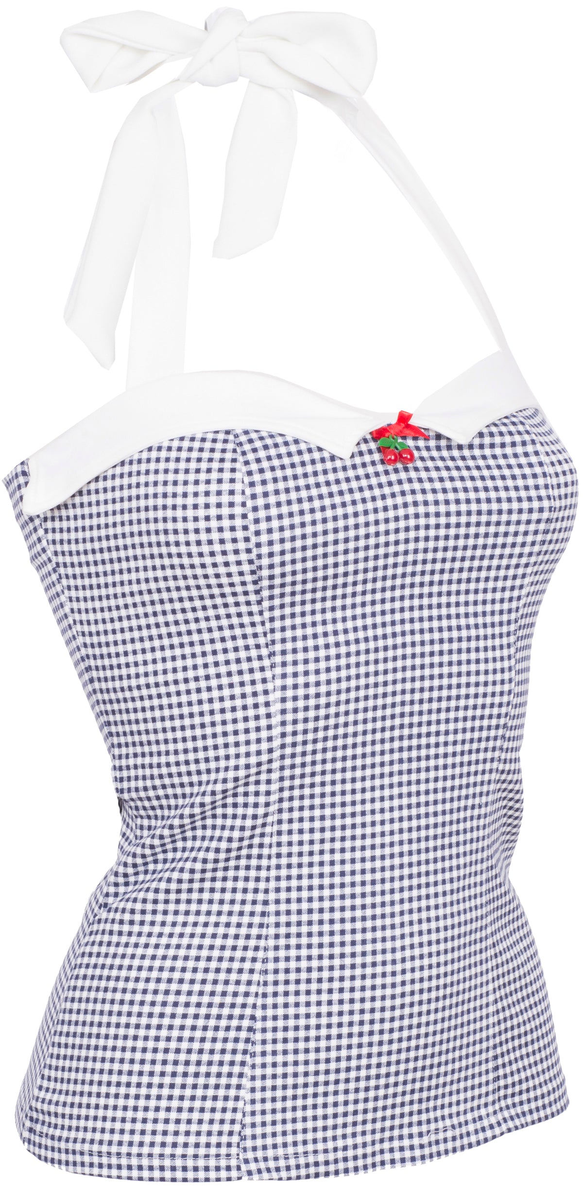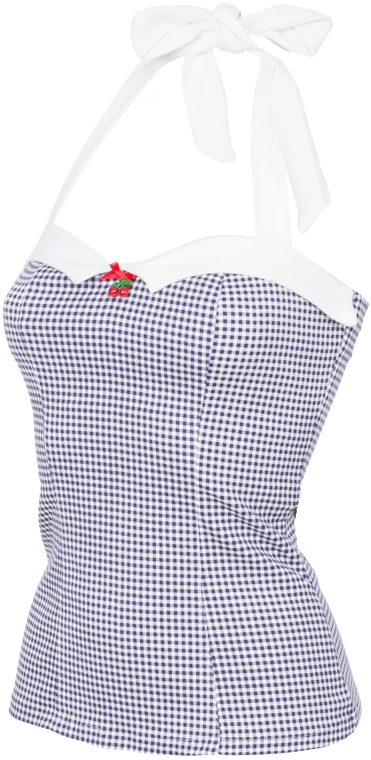 Traumhaftes Neckholdertop in dunkelblau-weißem Gingham-Muster
