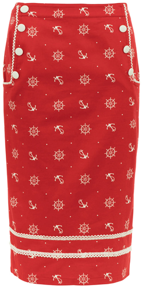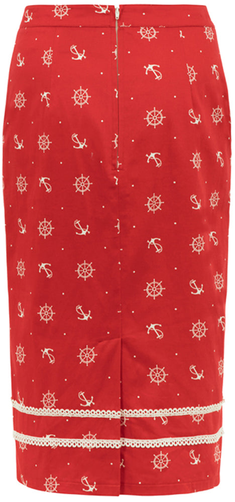Voodoo Vixen NAUTICAL Sailor Anchor PENCIL SKIRT Pin Up Rock - Rot