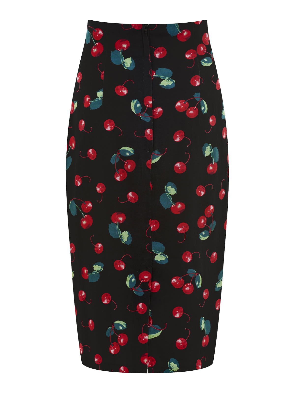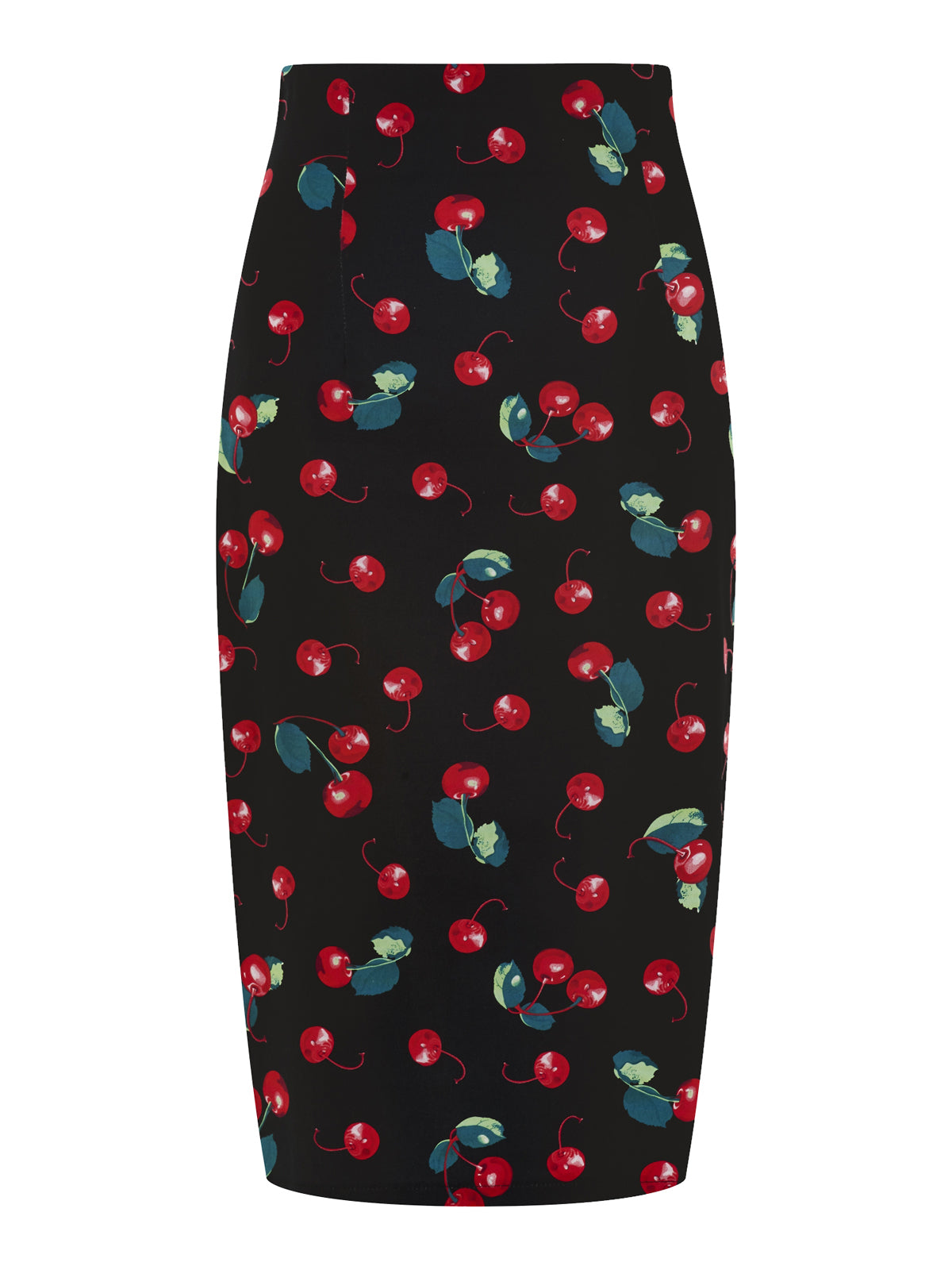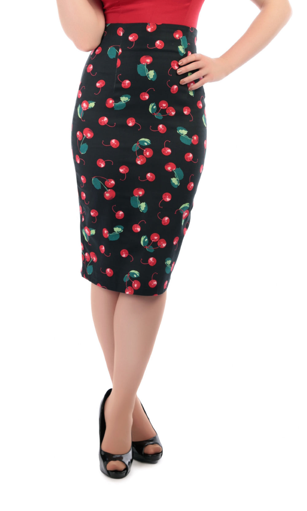 Collectif »FIONA CHERRY« Vintage Kirschen PENCIL SKIRT Bleistiftrock Schwarz