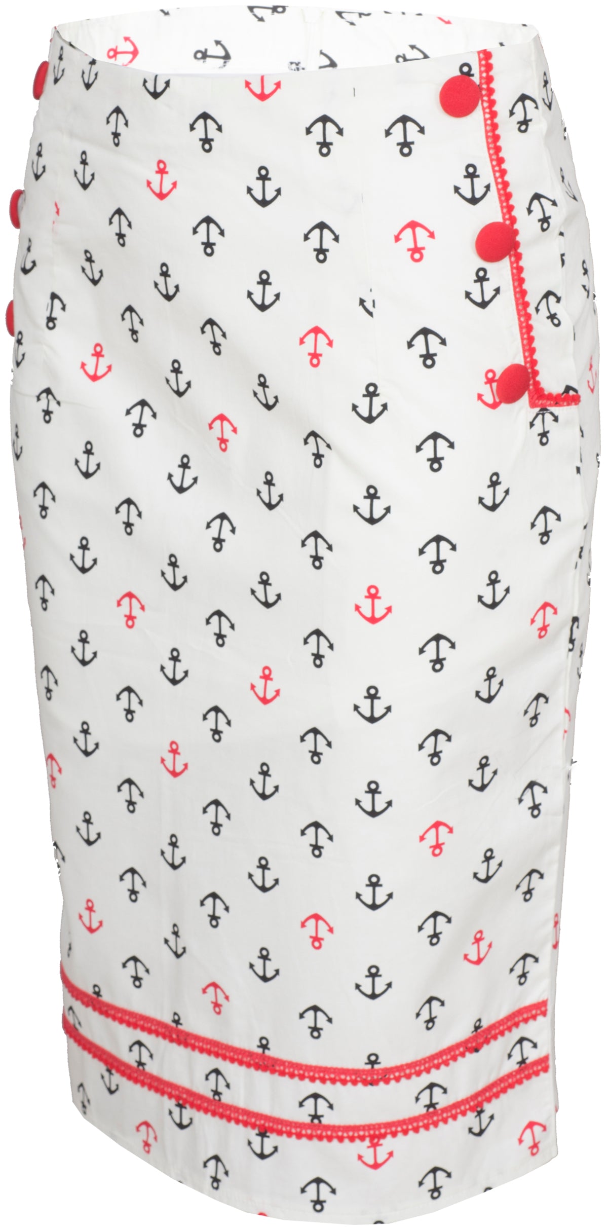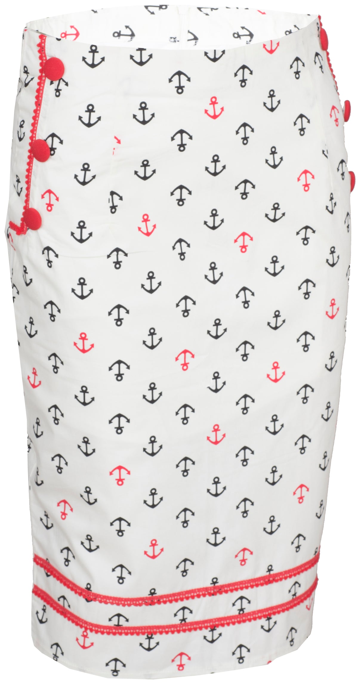 Küstenluder »VERDA SAILOR ANCHOR« Anker Nautical Pin Up Pencil Skirt / Rock - Weiß