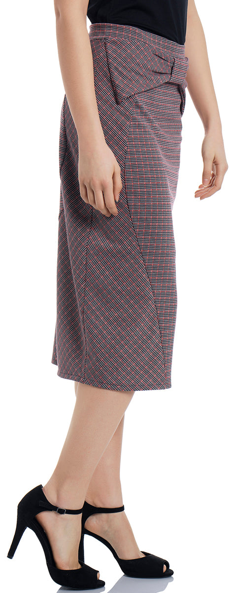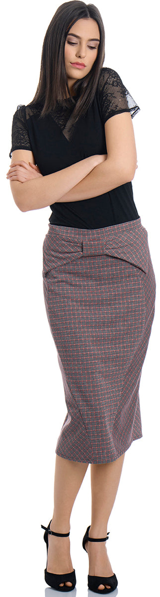 Gefütterter Retro Pencil Skirt aus angenehm weichem, leicht dehnbarem Material in klassischem, schwarz-creme-rotem Hahnentrittmuster
