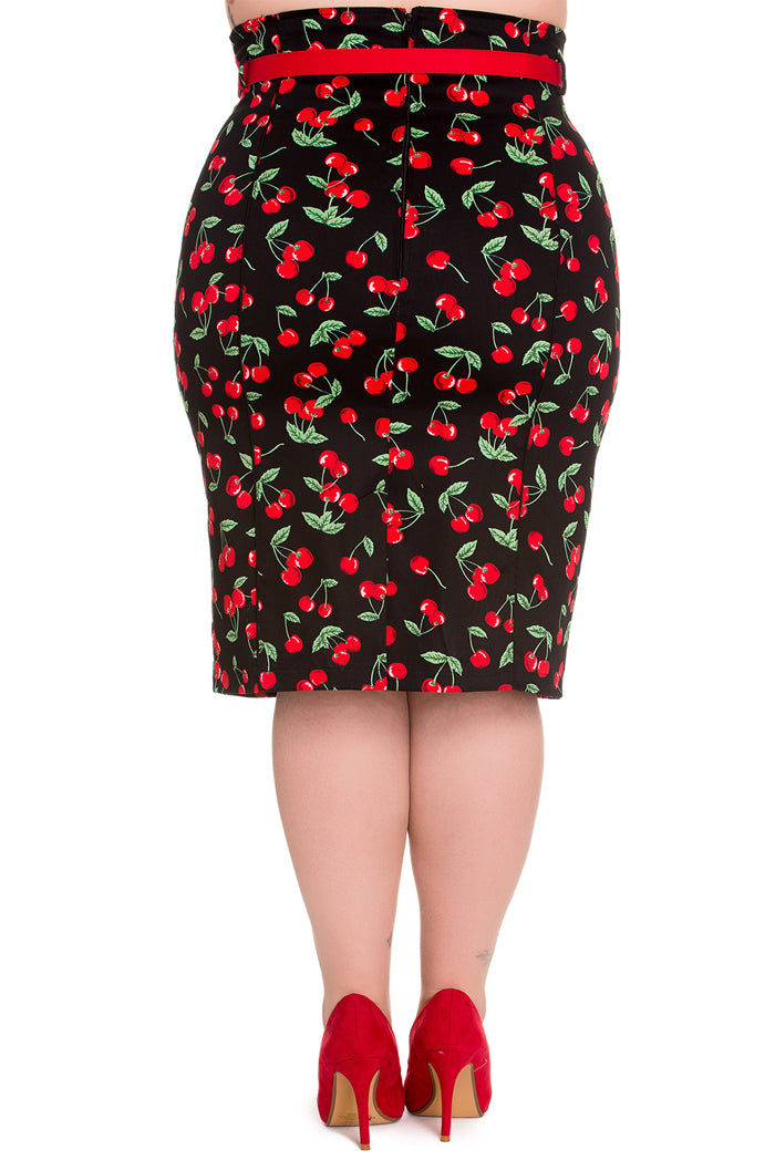 Der Cherry Pop Pencil Skirt von Hell Bunny ist ein wunderschöner Bleistiftrock in aufregendem Rockabilly Design - perfekt für ein authentisches Retro Outfit!