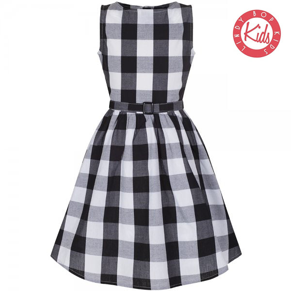 Lindy Bop »AUDREY PCNIC« KIDS Kinder Vintage GINGHAM Retro Kleid - Schwarz