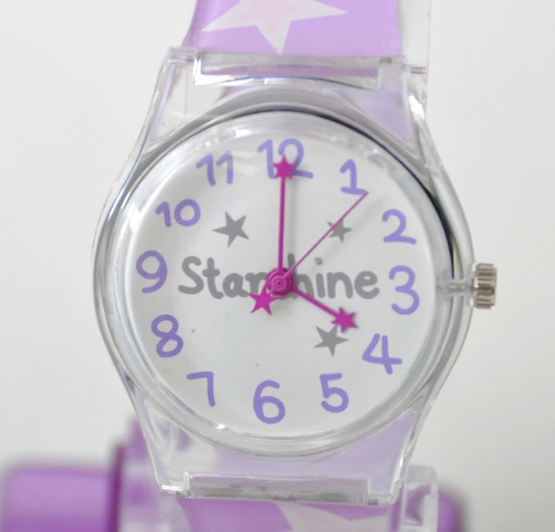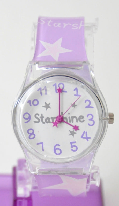 Süße STARS Starshine Armbanduhr Mit transparentem Gehäuse Weisses Ziffernblatt mit Schriftzug Süßes Detail: Zeigerenden ebenfalls mit Sternmotiv Schöne Geschenkidee