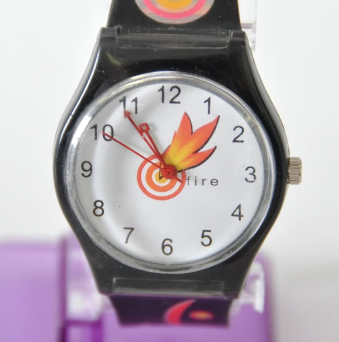 Schöne Armbanduhr mit FIRE Schriftzug & Flammenmotiv auf Armband und Ziffernblatt