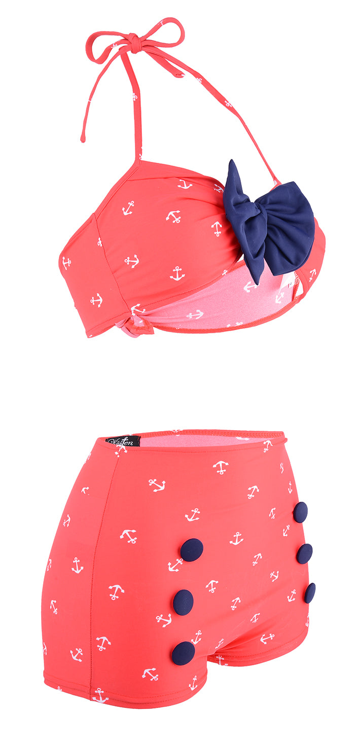 Küstenluder »SYBILLE SAILOR« Vitnage ANCHOR Anker Pin Up BIKINI SET - Rot