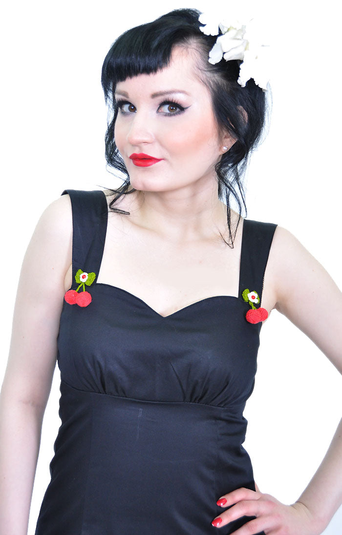 Küstenluder CORALEE Cherries PIN UP Pencil KLEID - Schwarz