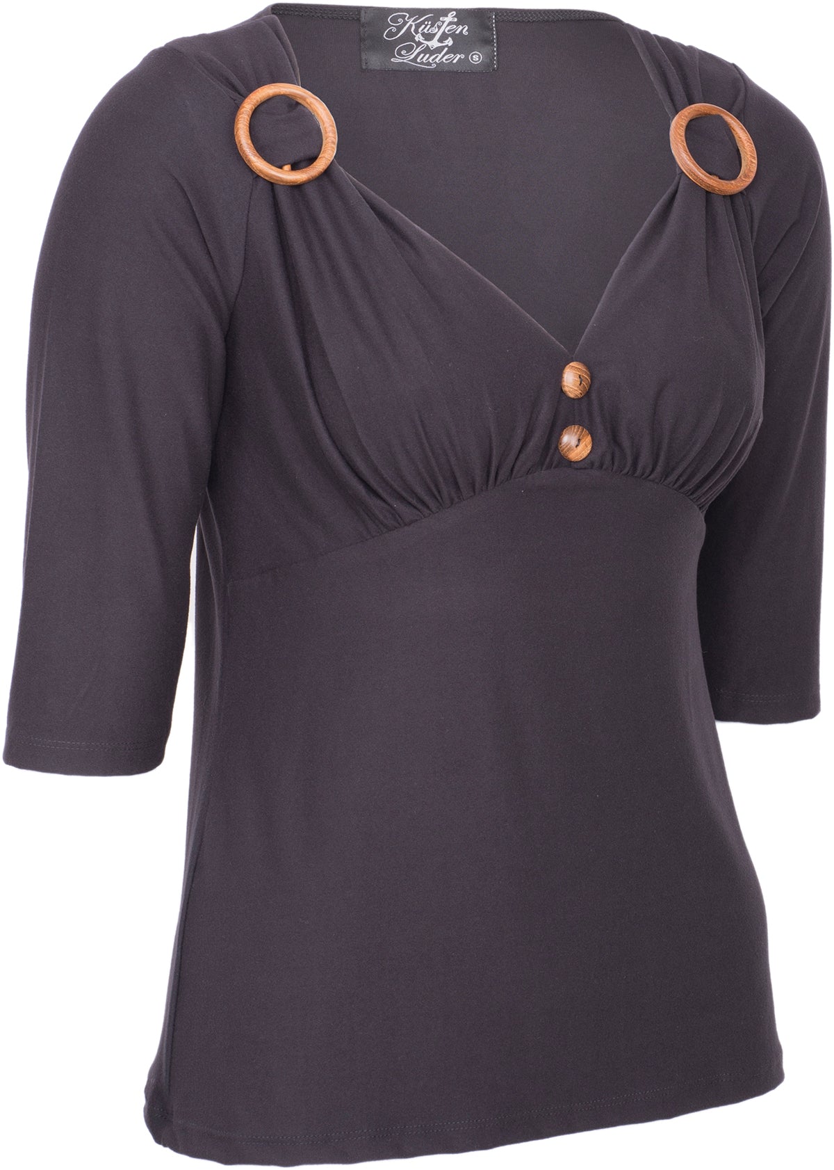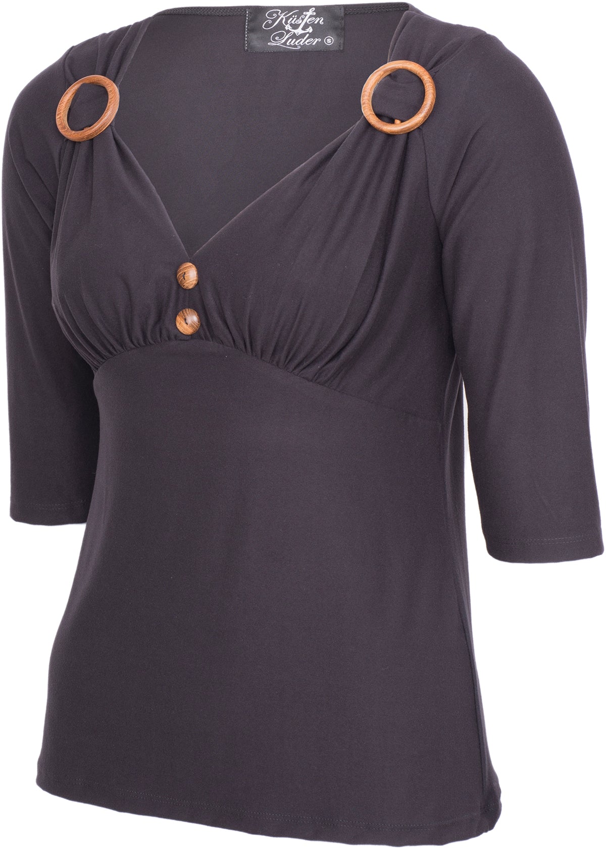 Küstenluder RENETTA Pin Up 50s Basic V-NECK 3/4 Arm SHIRT - schwarz
