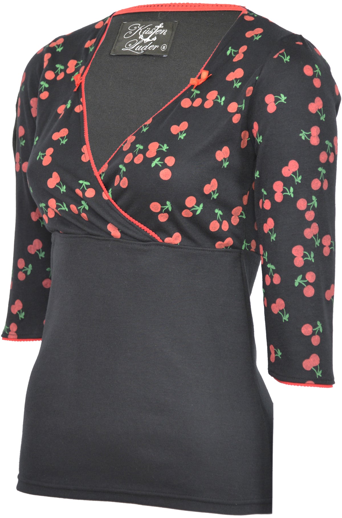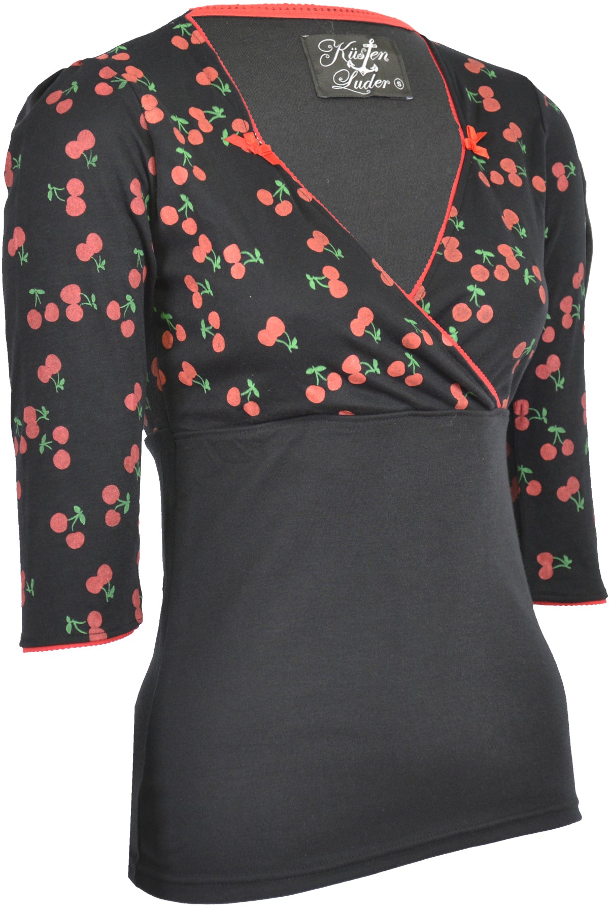 3/4 lange Ärmel, abgesäumt mit roter Mausezahnspitze