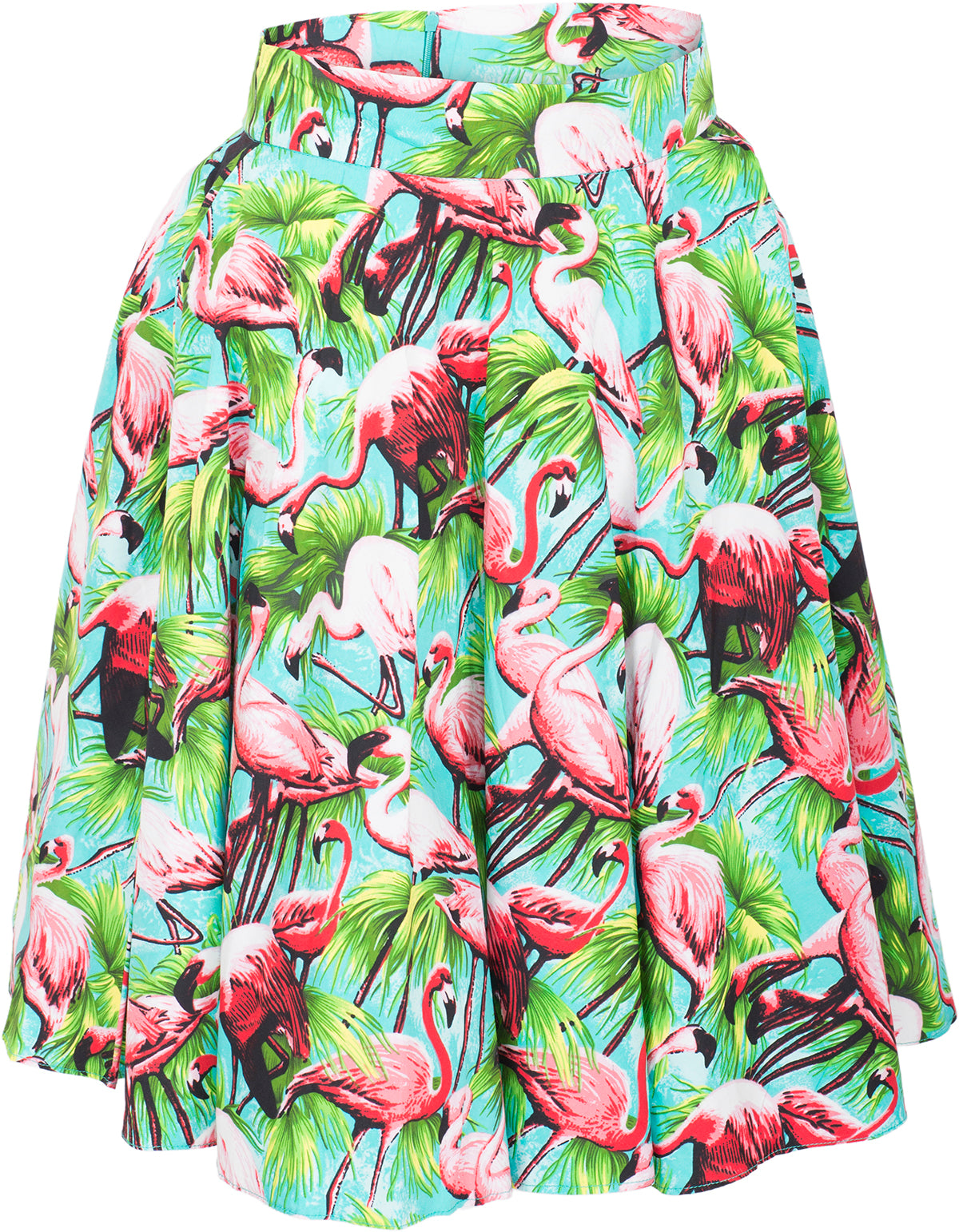 Küstenluder "HOLLY TIKI" FLAMINGO Tropical 50s Pin Up Swing Skirt ROCK - Türkis
