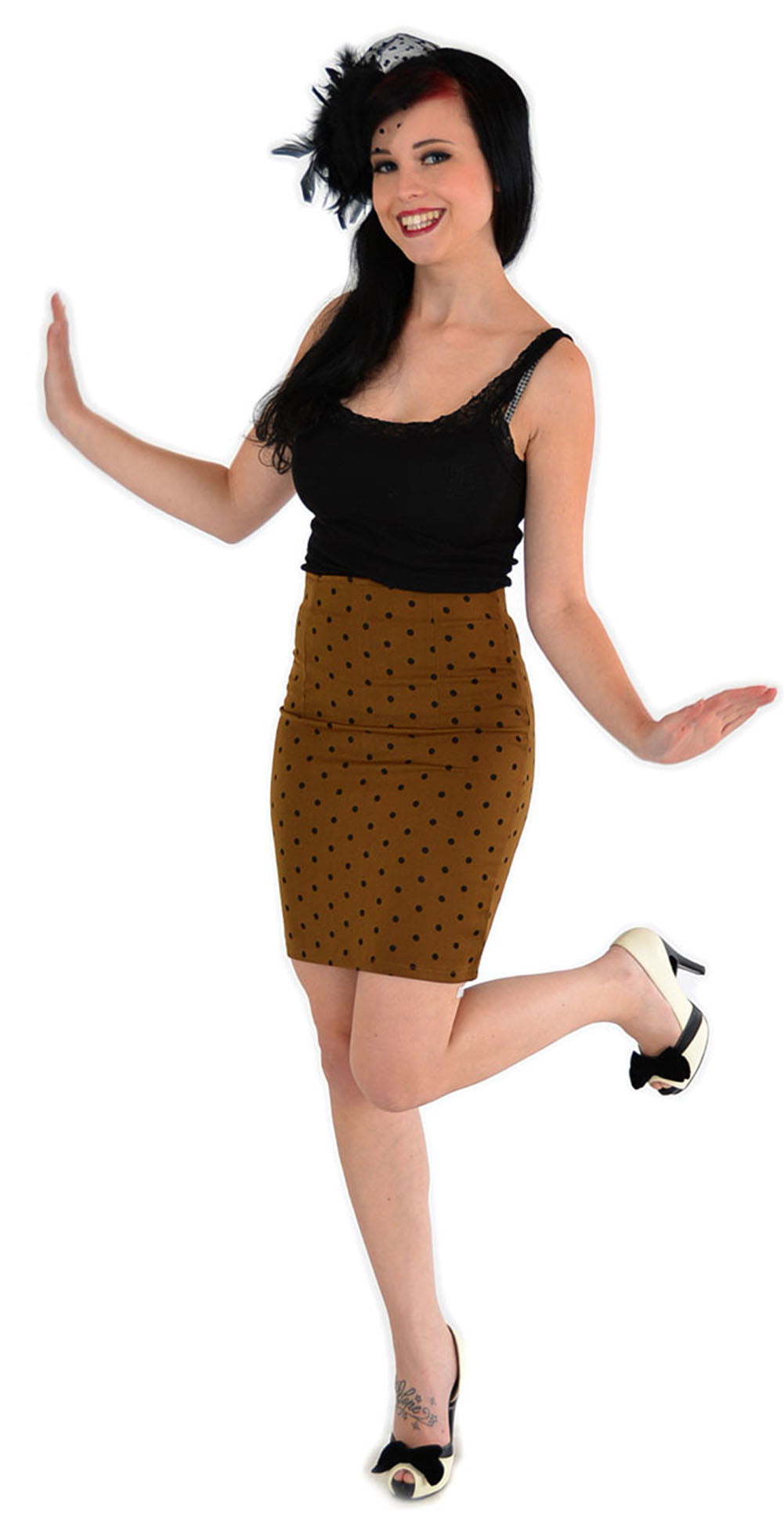 Small DOTS Punkte 50s Pin Up PENCIL SKIRT / Rock - Caramel