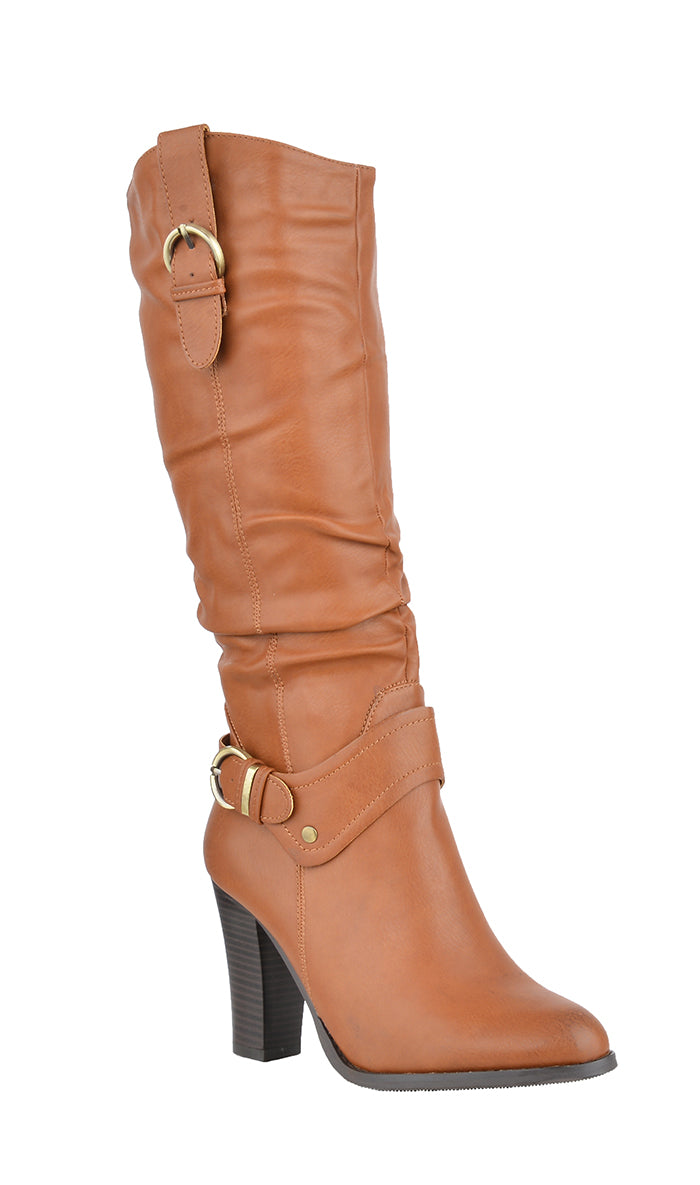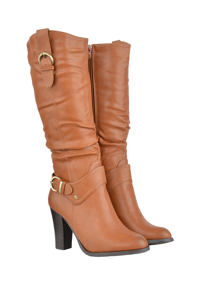 Edle Retro Kniehohe BUCKLE Schnallen Boots / STIEFEL - Camel