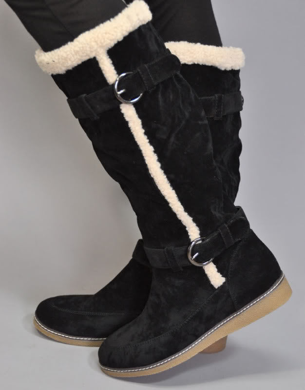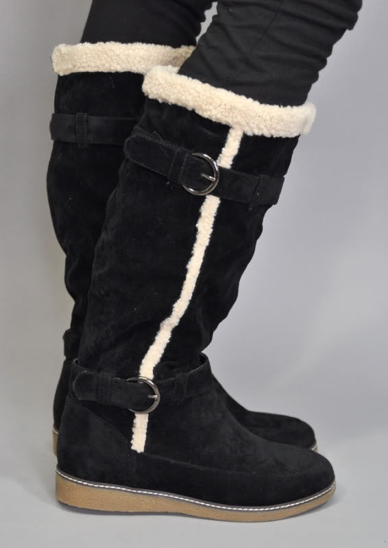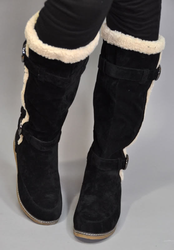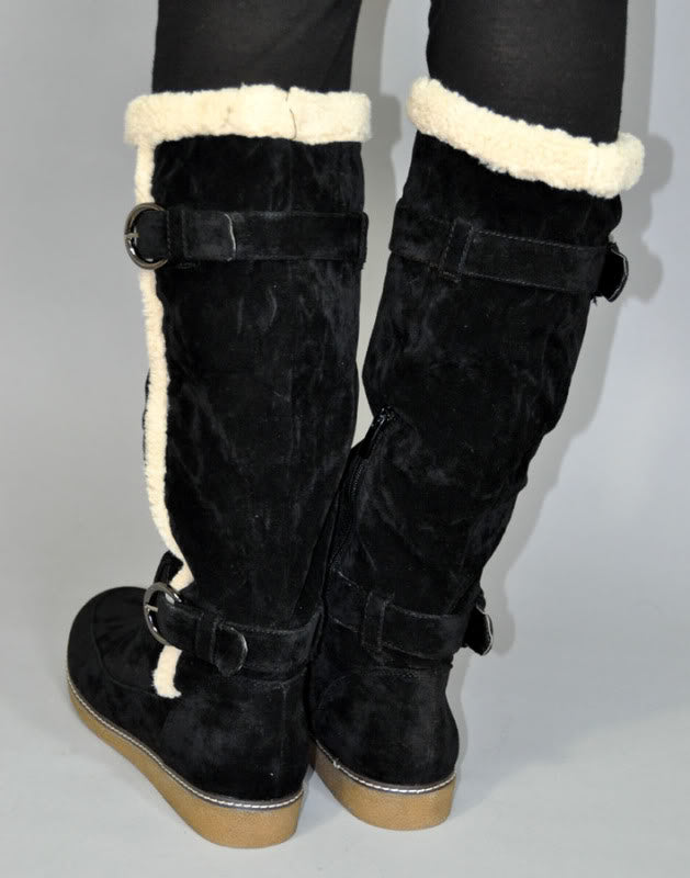 Hohe WINTERSTIEFEL Boots mit Fake Fur Krempe