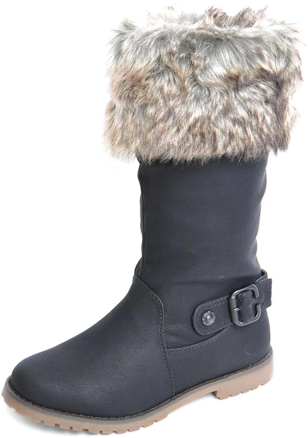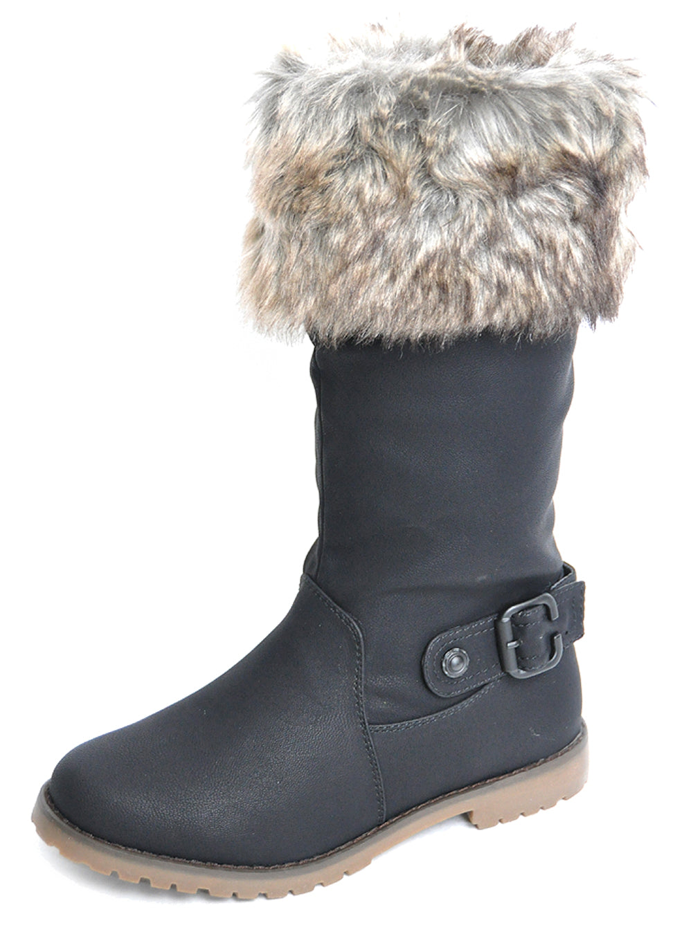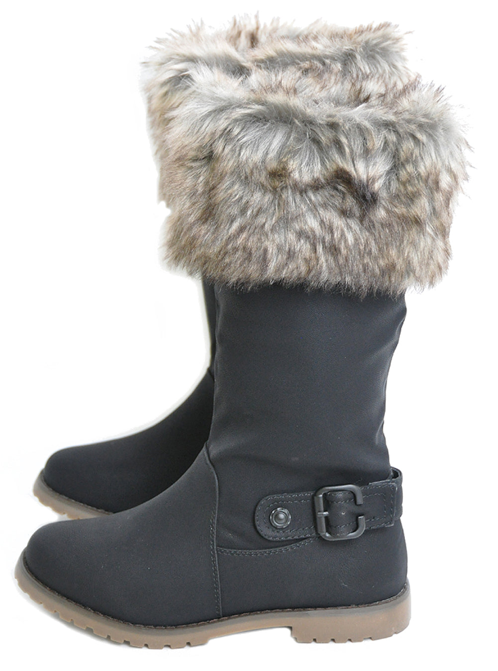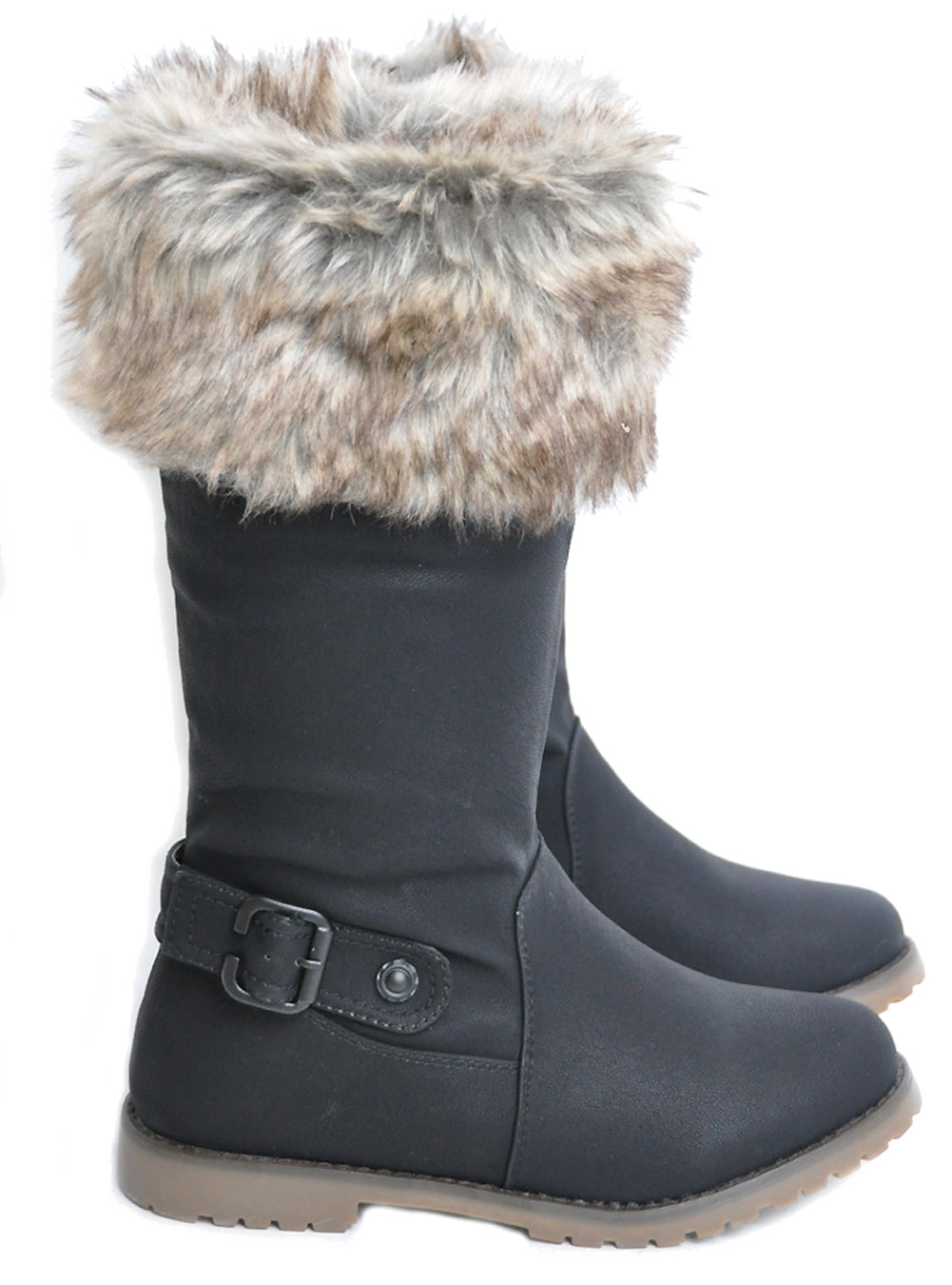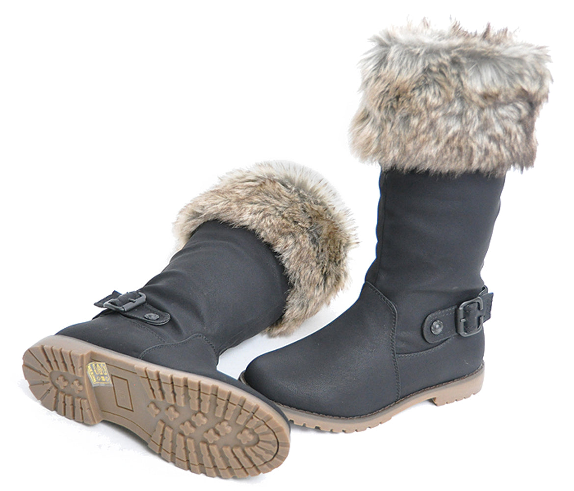 Flauschige Fake Fur BOOTS Krempe STIEFEL mit Schnalle